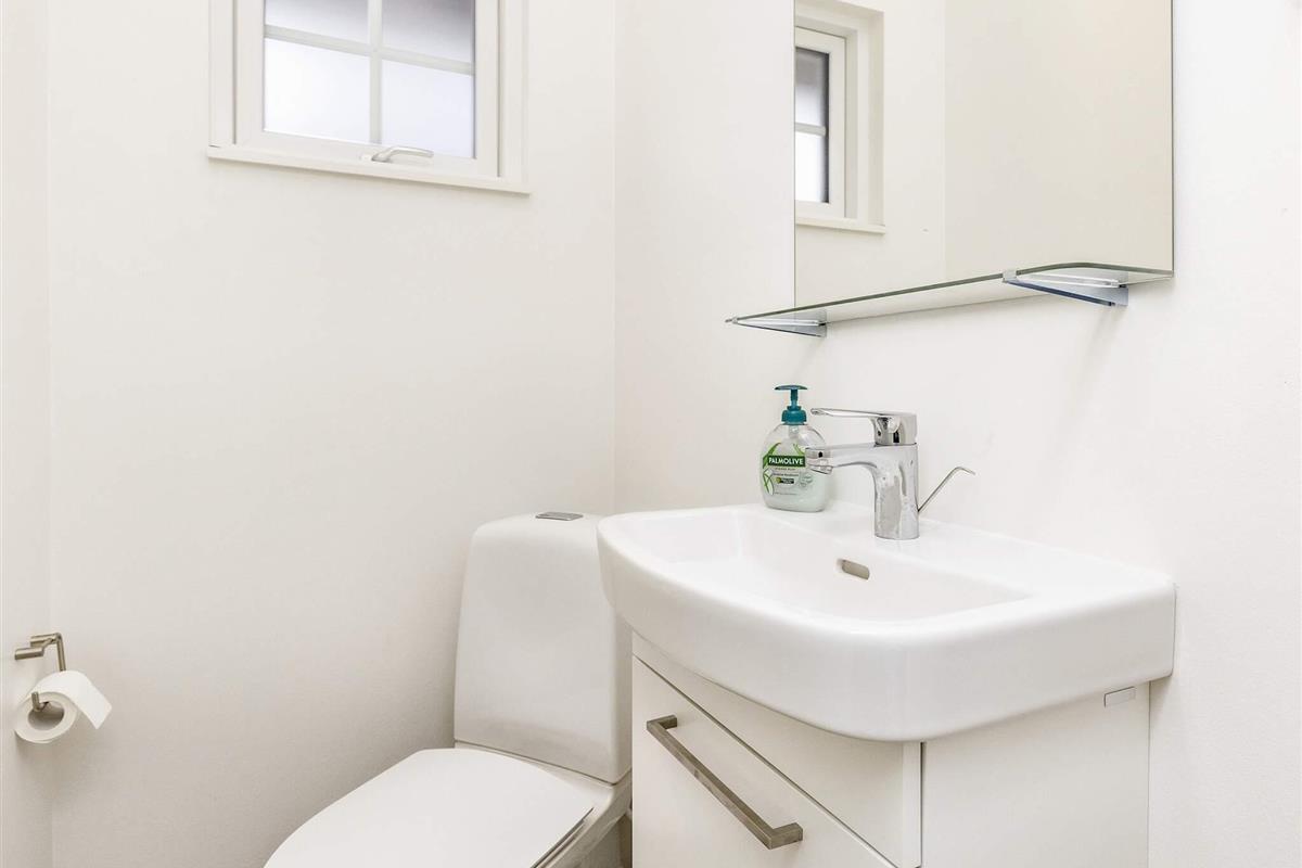 Das Herzstück des Hauses ist die große, offene Wohnküche mit Wohnzimmer, die Platz zum geselligen Beisammensein, Kochen, Essen, Spielen oder Entspannen vor dem Fernseher bietet. Von hier aus genießen Sie Meerblick nach Osten, Süden und Westen, was für einzigartiges Licht und eine außergewöhnliche Atmosphäre im gesamten Raum sorgt. Die gut ausgestattete Küche erleichtert die Zubereitung von Mahlzeiten, während die integrierte Wasch-Trockner-Kombination zusätzlichen Komfort bietet.
