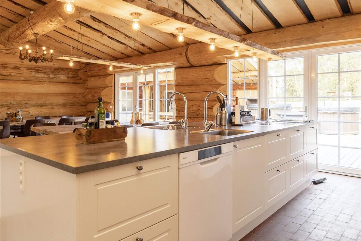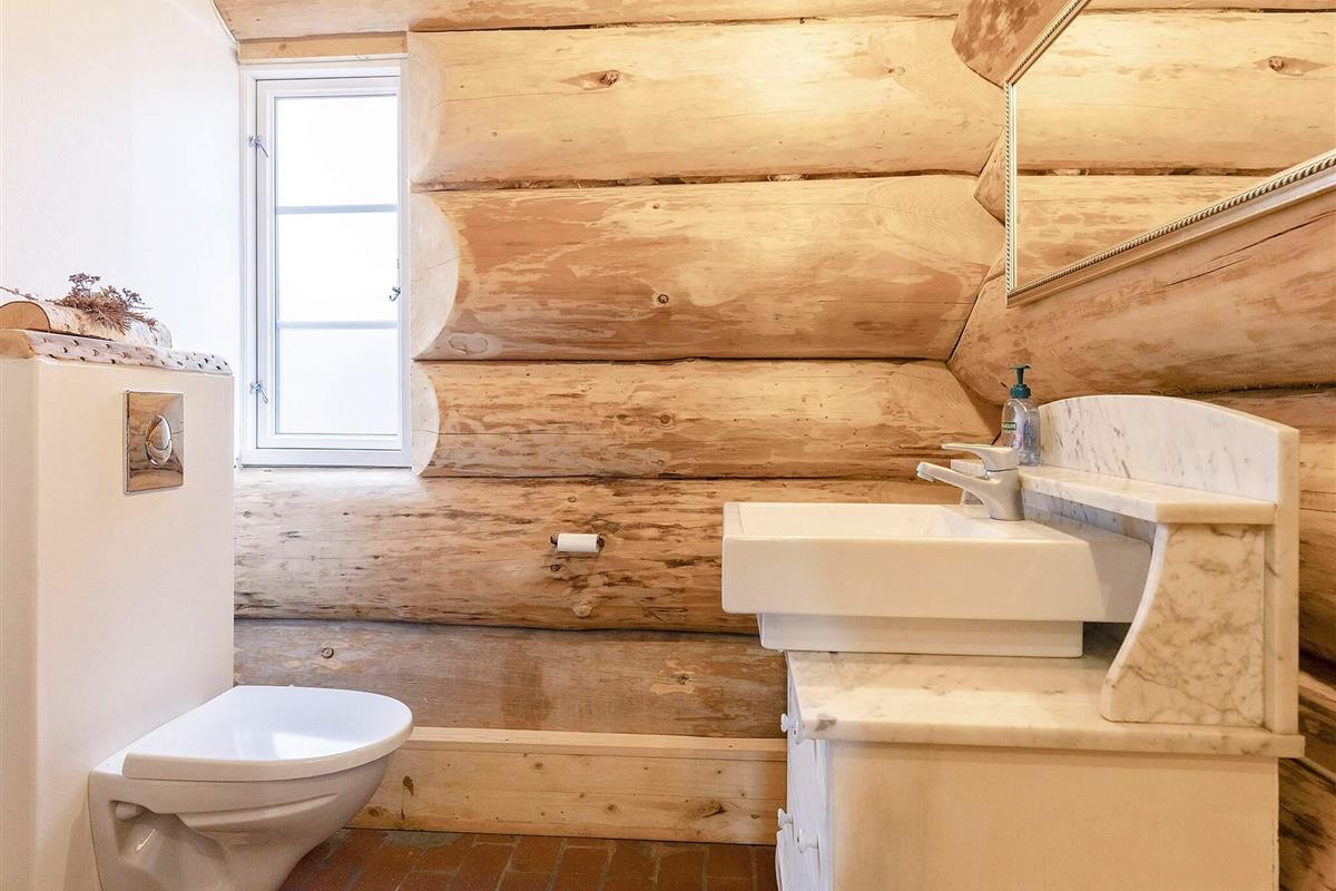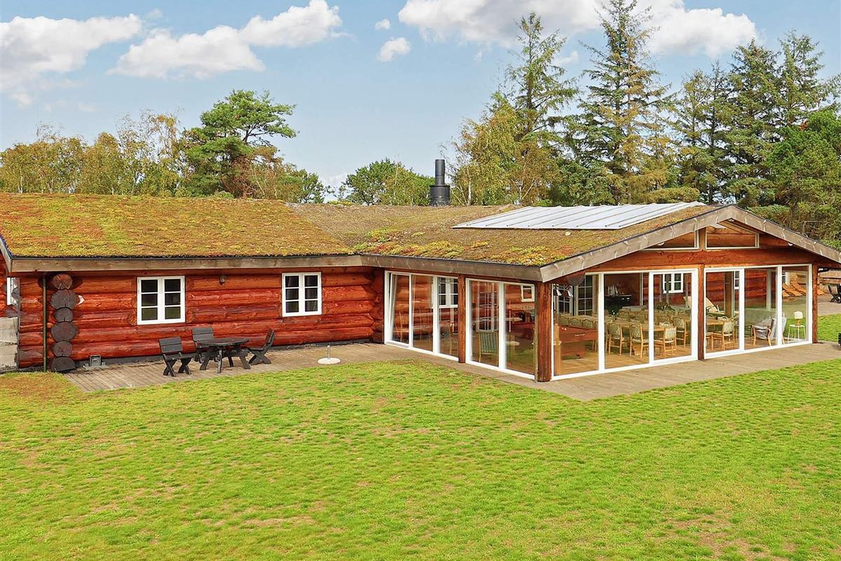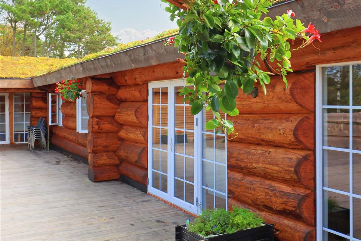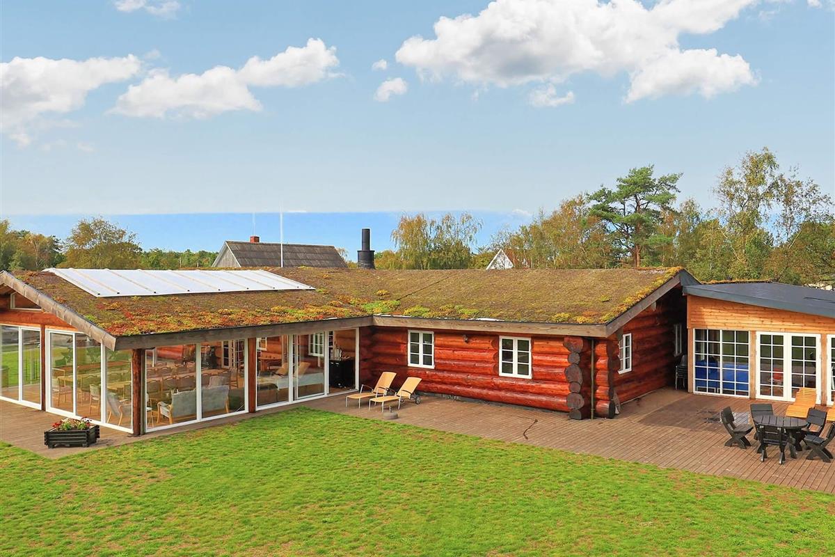 Dieses Ferienhaus ist mit seinen großen Balken, dem einzigartigen Baustil und viel Platz und Komfort etwas Besonderes. Mit großem Respekt für das Baumaterial, das fast ausschließlich aus riesigen Baumstämmen besteht, wurde Wert auf einzigartige und besondere Lösungen gelegt. Die großen Baumstämme, jeder für sich einzigartig und mit eigenem Charakter, sorgen nicht nur für eine fantastische Akustik und ein einzigartiges Raumklima, sondern bilden auch die Grundlage für die wunderbare Atmosphäre, die schnell zum Entspannen einlädt und perfekt zur DNA von Læsø passt.