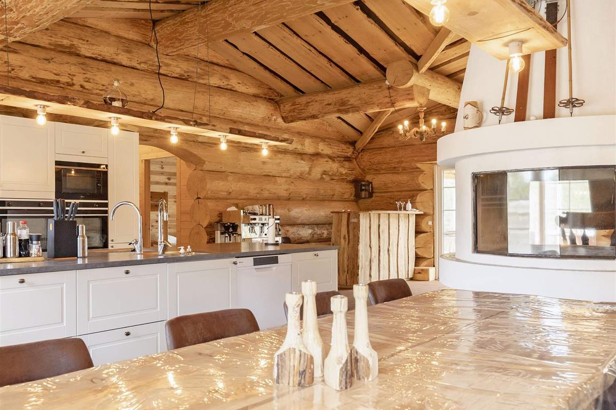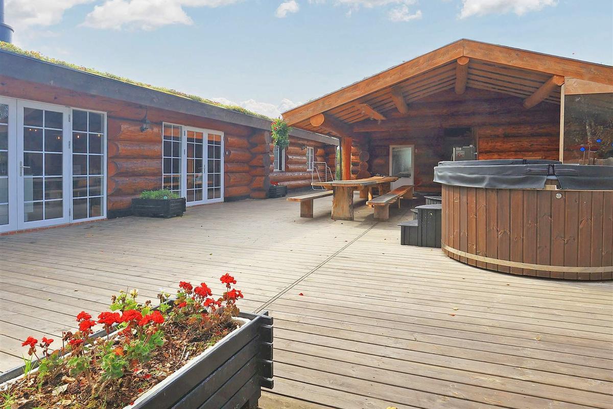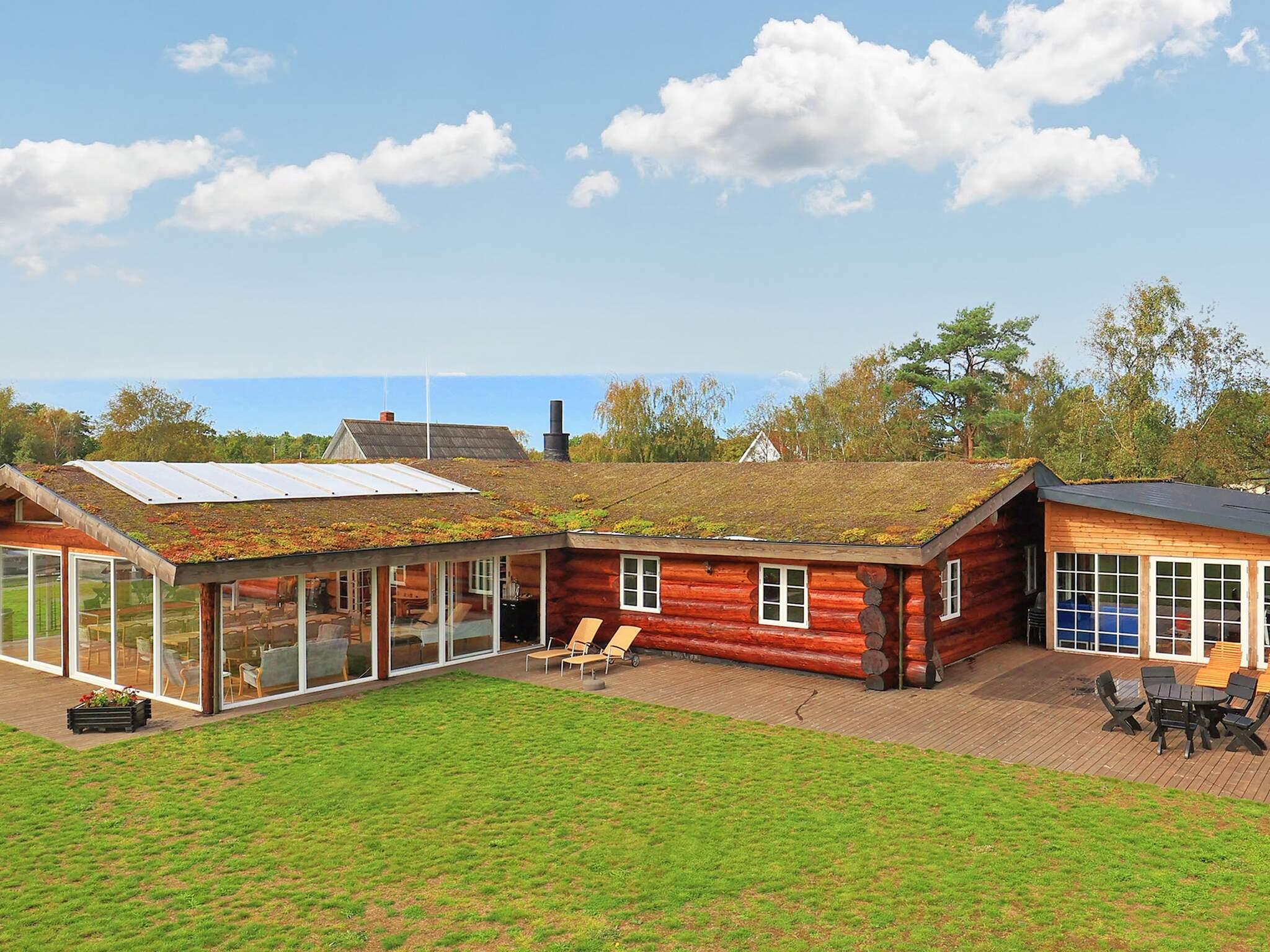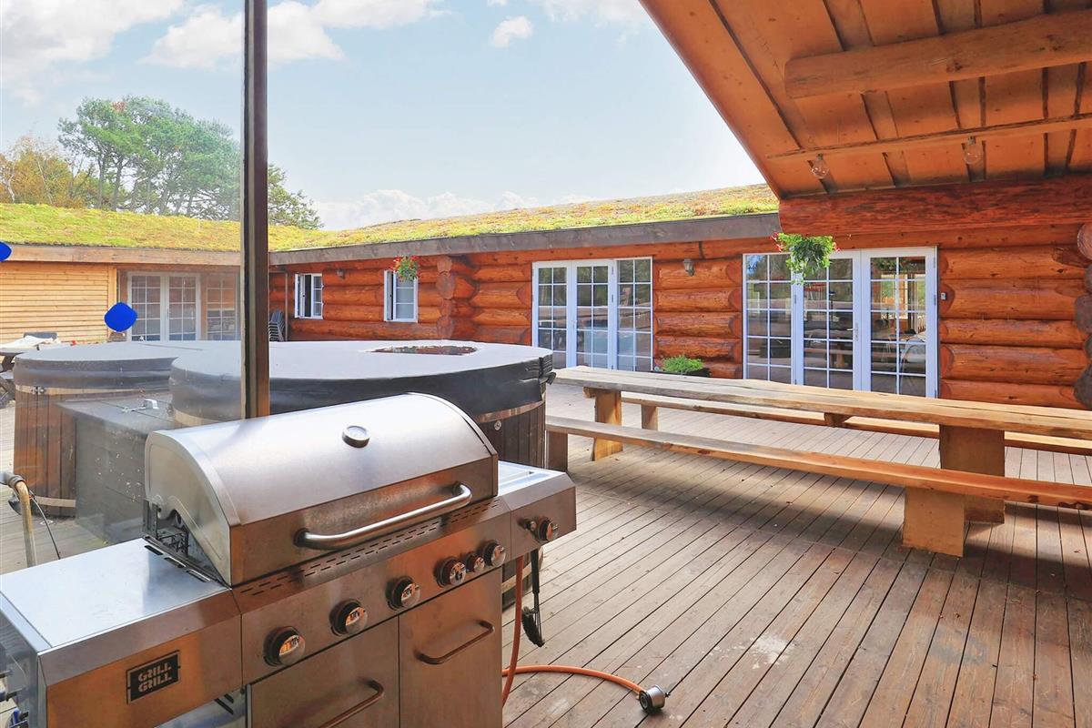 Dieses Ferienhaus ist mit seinen großen Balken, dem einzigartigen Baustil und viel Platz und Komfort etwas Besonderes. Mit großem Respekt für das Baumaterial, das fast ausschließlich aus riesigen Baumstämmen besteht, wurde Wert auf einzigartige und besondere Lösungen gelegt. Die großen Baumstämme, jeder für sich einzigartig und mit eigenem Charakter, sorgen nicht nur für eine fantastische Akustik und ein einzigartiges Raumklima, sondern bilden auch die Grundlage für die wunderbare Atmosphäre, die schnell zum Entspannen einlädt und perfekt zur DNA von Læsø passt.