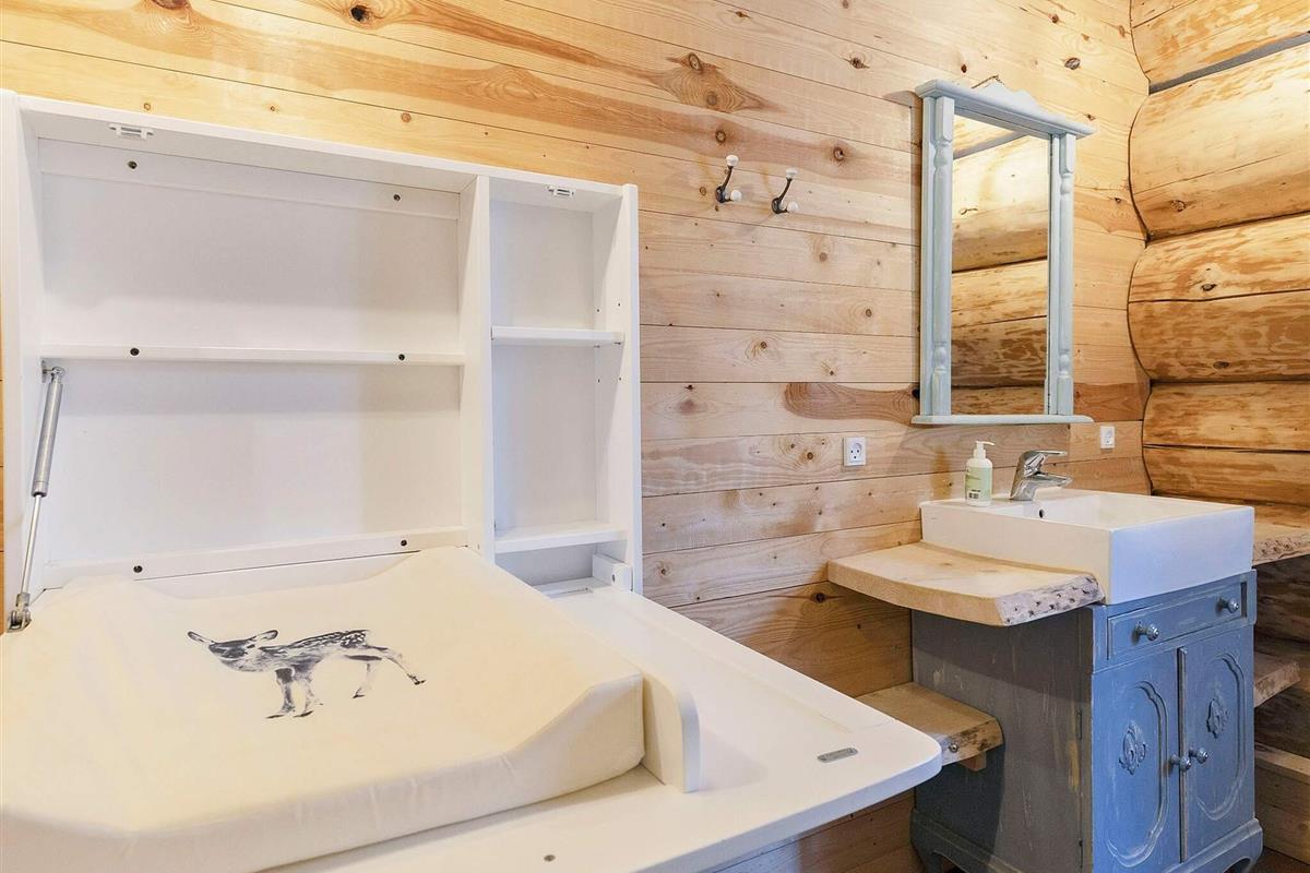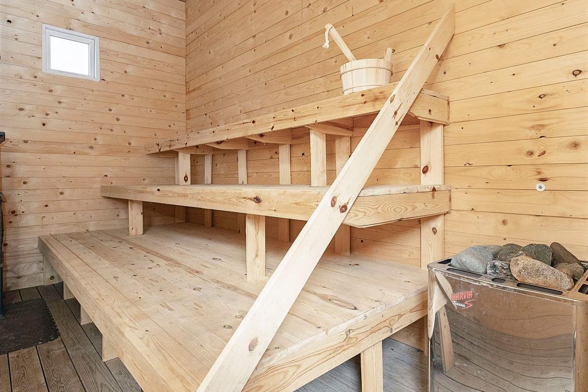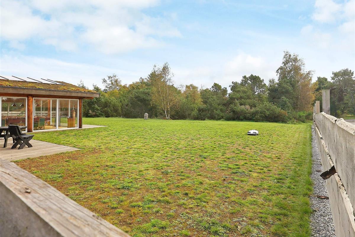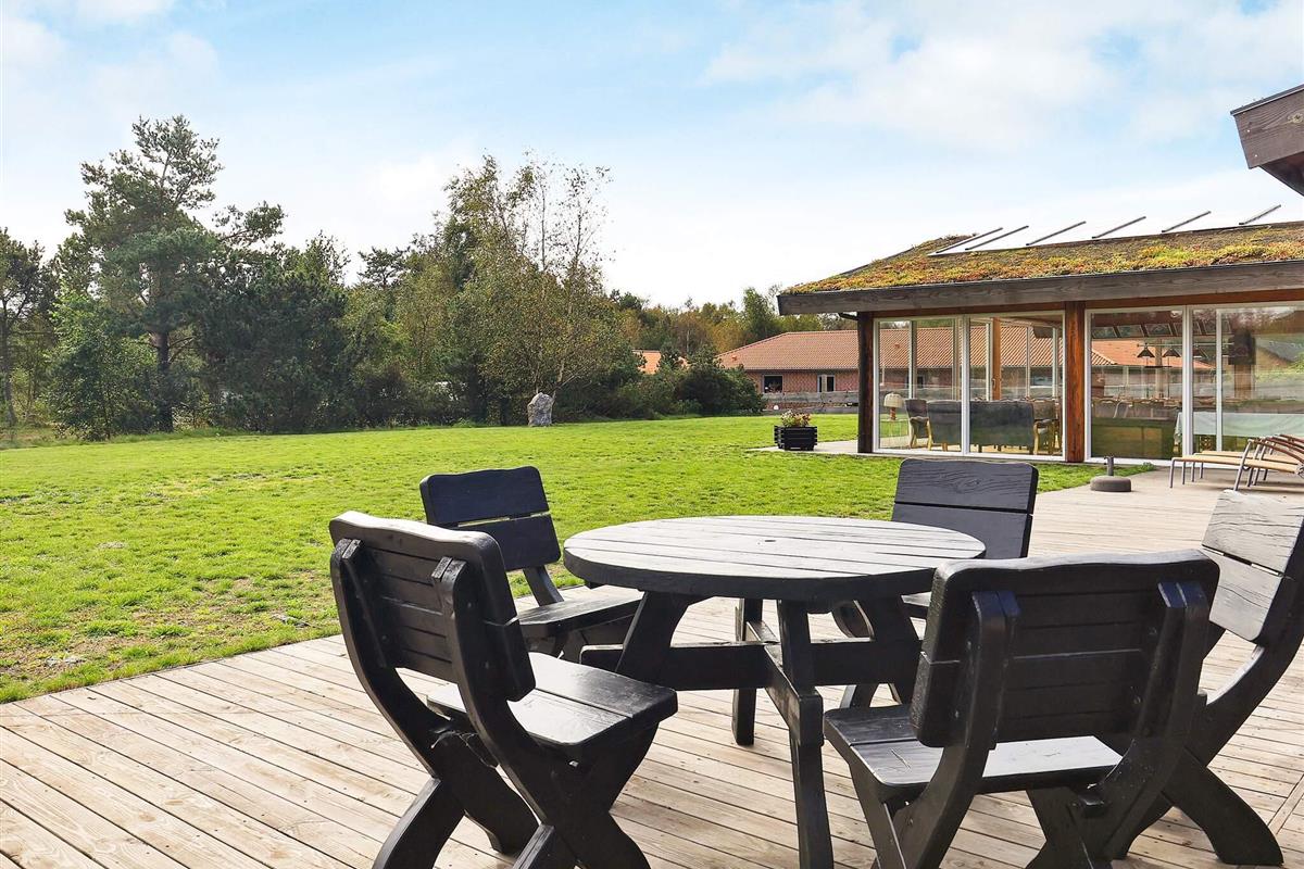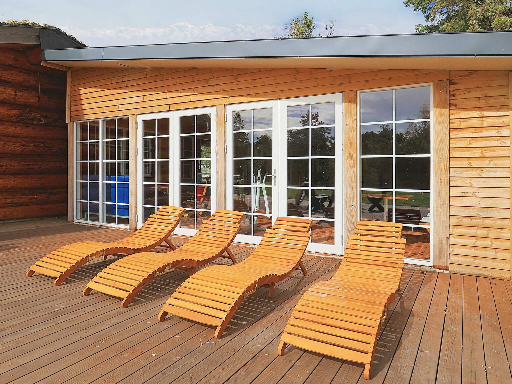 Dieses Ferienhaus ist mit seinen großen Balken, dem einzigartigen Baustil und viel Platz und Komfort etwas Besonderes. Mit großem Respekt für das Baumaterial, das fast ausschließlich aus riesigen Baumstämmen besteht, wurde Wert auf einzigartige und besondere Lösungen gelegt. Die großen Baumstämme, jeder für sich einzigartig und mit eigenem Charakter, sorgen nicht nur für eine fantastische Akustik und ein einzigartiges Raumklima, sondern bilden auch die Grundlage für die wunderbare Atmosphäre, die schnell zum Entspannen einlädt und perfekt zur DNA von Læsø passt.