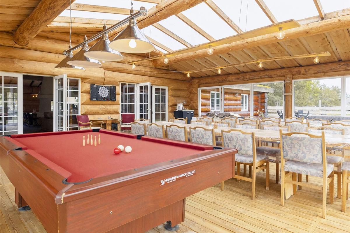 Vom Wohnzimmer aus gelangen Sie in den schönen, hellen, 100 m² großen Wintergarten, der noch mehr Platz zum Genießen von Mahlzeiten oder zum Spielen beim Billard bietet.