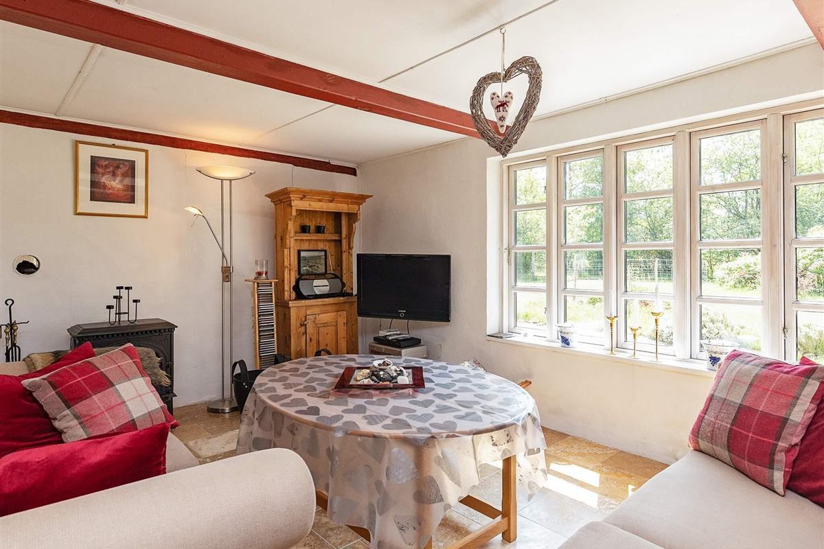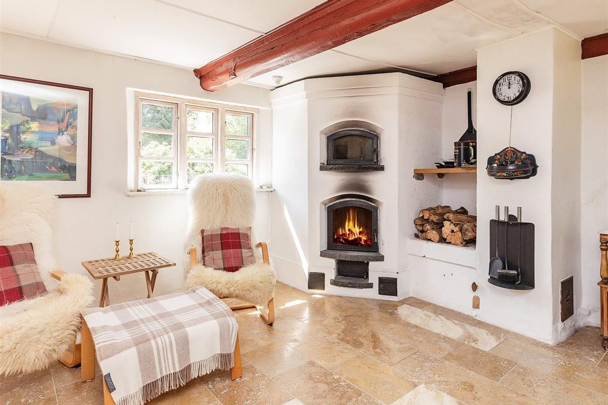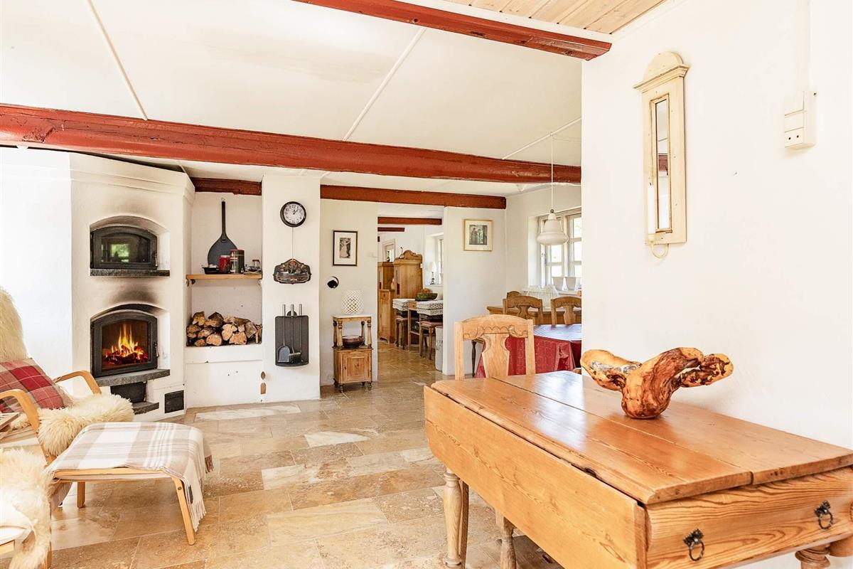 Das Esszimmer bietet Platz für die ganze Familie am gemütlichen Esstisch. Für kühlere Tage gibt es einen gemütlichen Holzofen. Im Wohnzimmer gibt es einen weiteren Holzofen und große Fenster sorgen für viel Licht. Es gibt einen Fernseher mit Chromecast sowie viele DVD-Filme, Bücher und Spiele.
