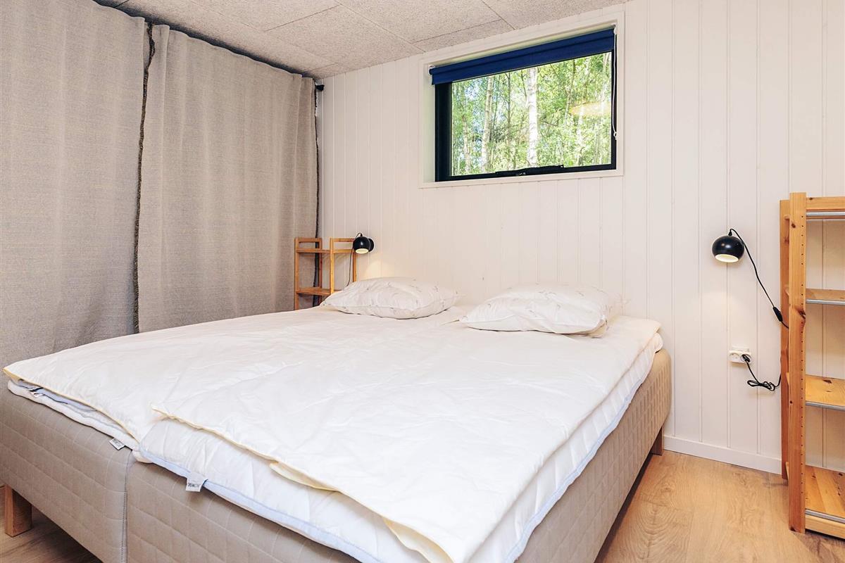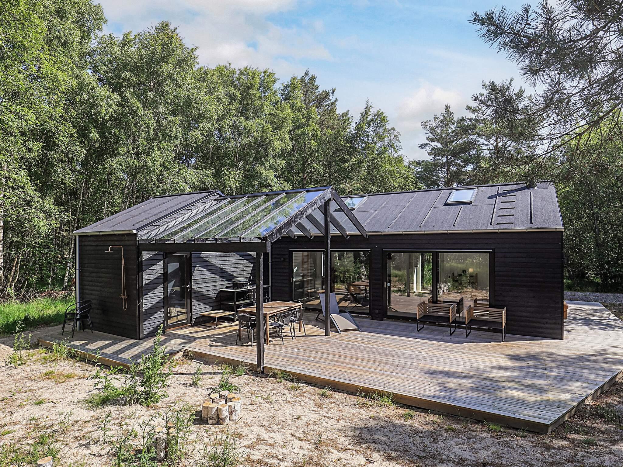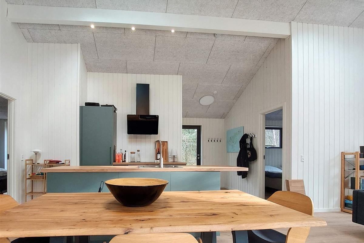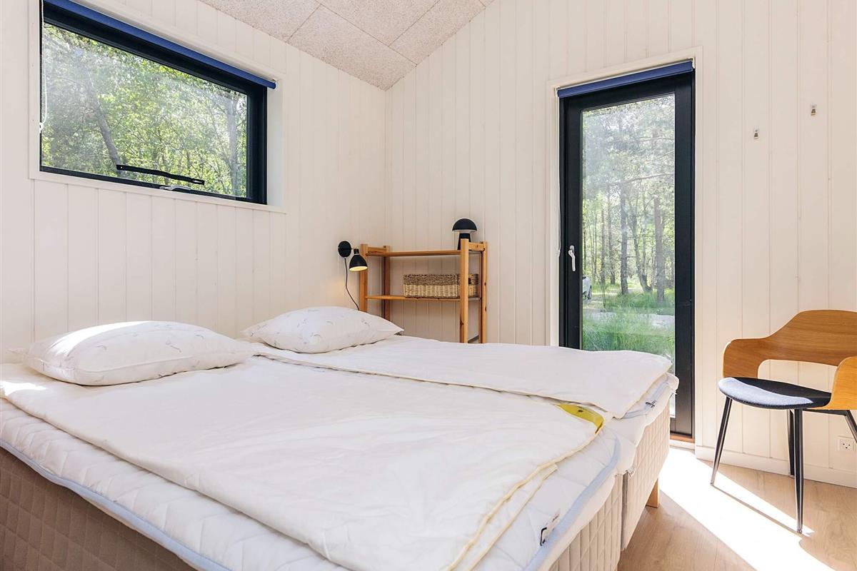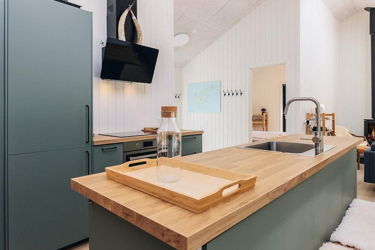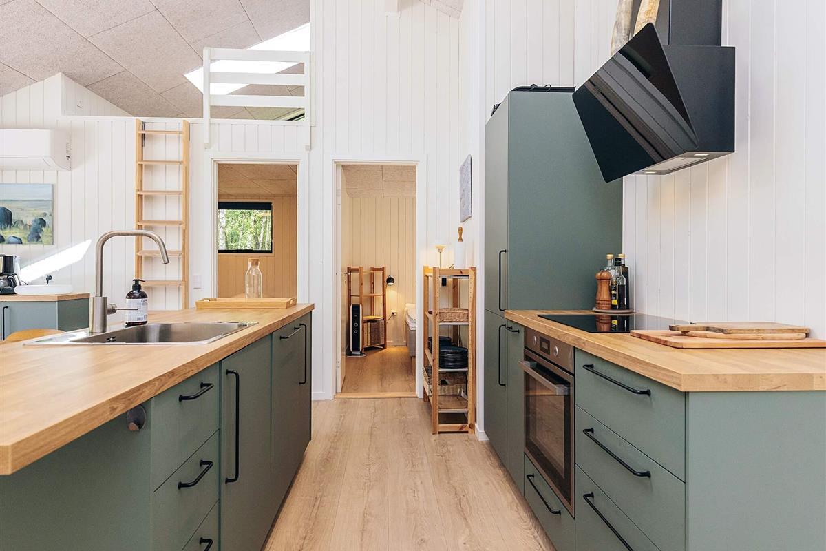 Das moderne Ferienhaus ist praktisch ausgestattet und geschmackvoll und durchdacht eingerichtet. Es besteht aus einem Wohnzimmer mit großen Fenstern, die für viel Licht sorgen. Der Wohnbereich verfügt über einen Holzofen, eine offene Küche mit angrenzendem Esszimmer, drei geräumige Schlafzimmer und ein Badezimmer mit komfortabler Fußbodenheizung. Es gibt außerdem einen gemütlichen Schlafboden mit Matratzen, auf den sich die älteren Kinder der Familie zurückziehen und Ruhe finden können.