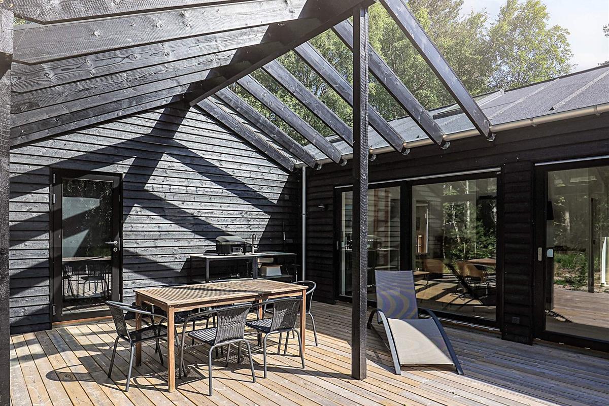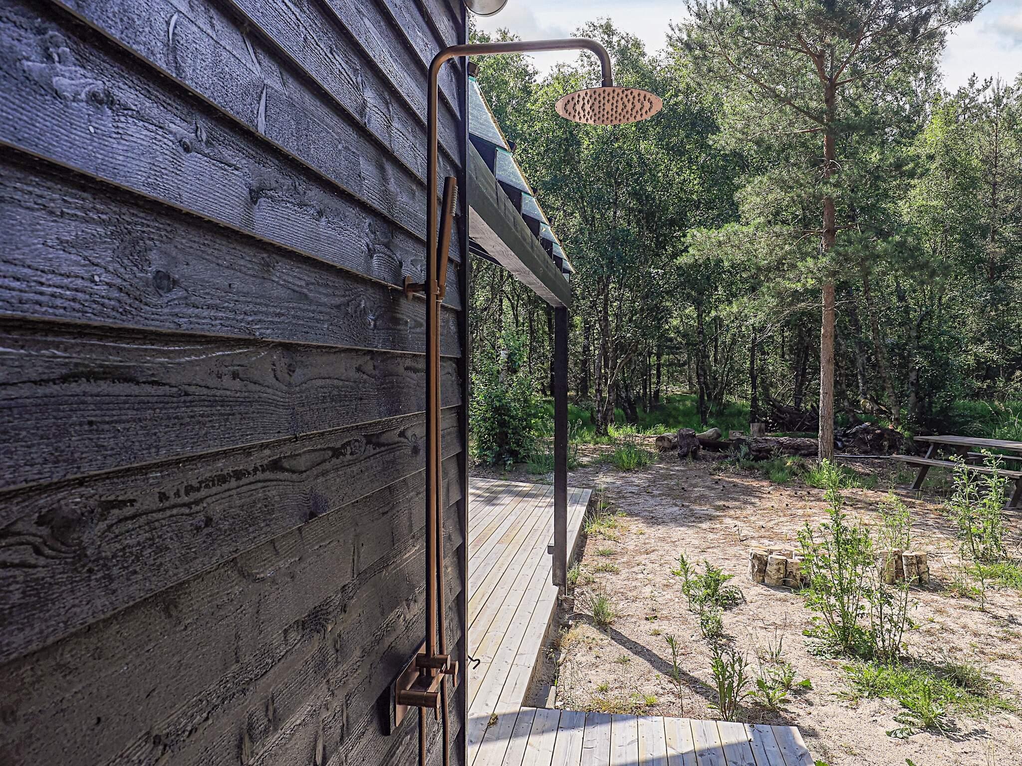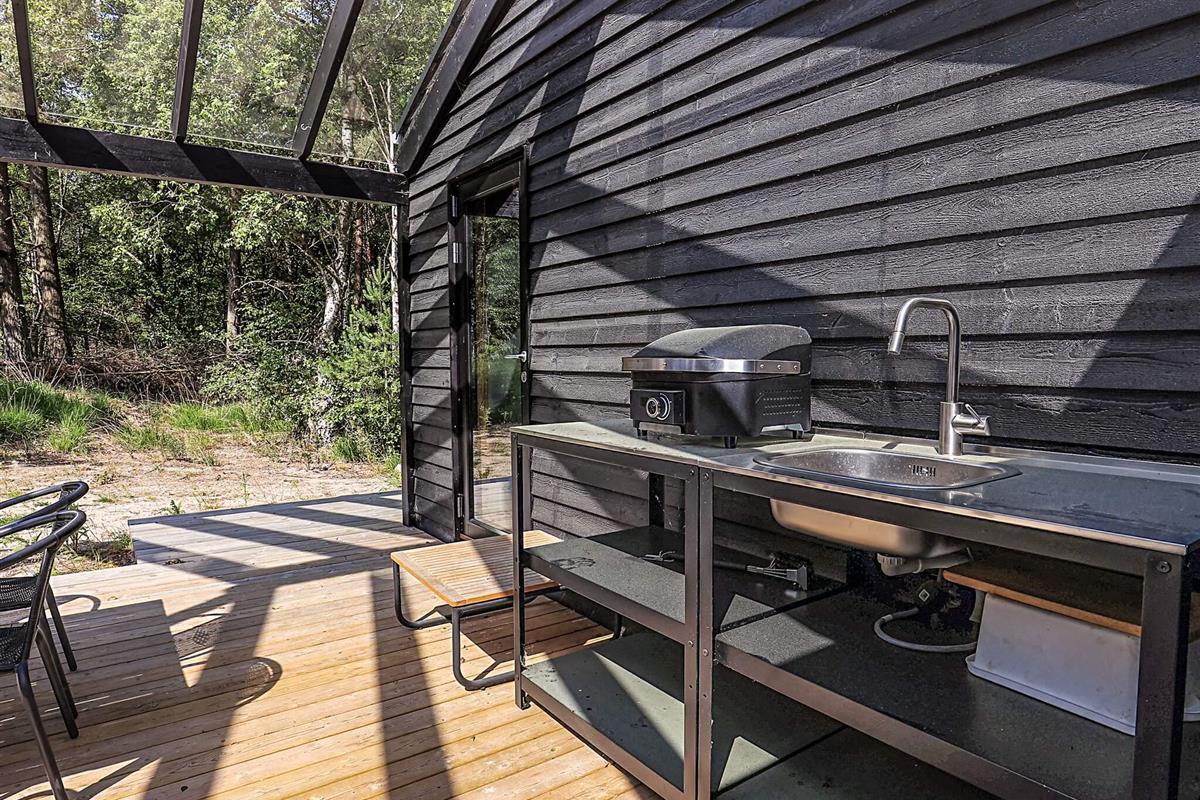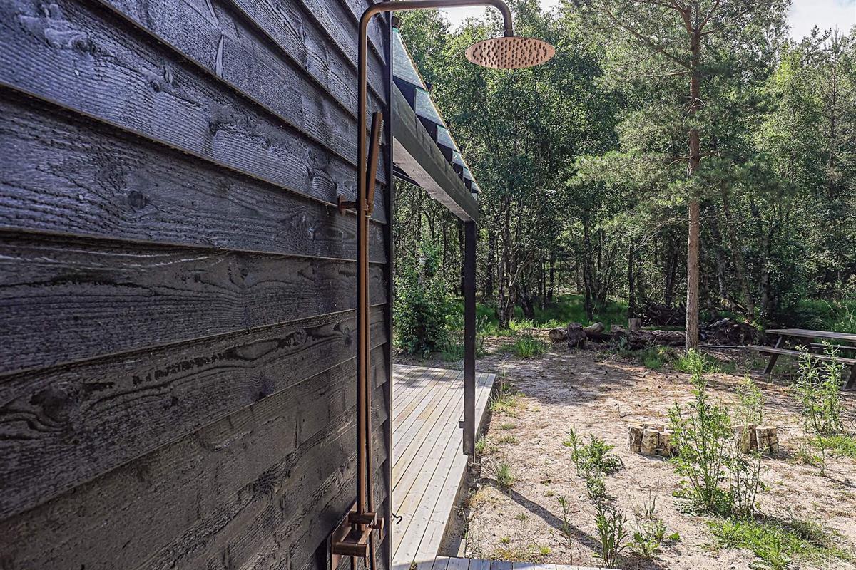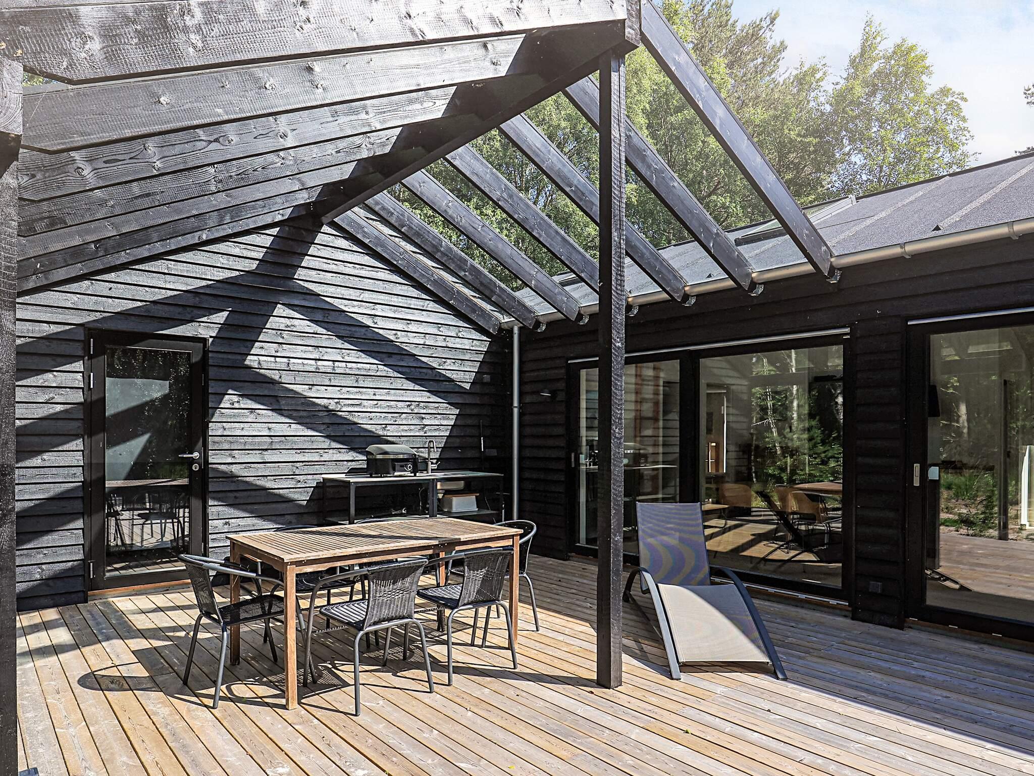 Der Außenbereich des Hauses bietet zwei Terrassen, eine davon überdacht. Es gibt außerdem eine praktische Außendusche, eine Außenküche mit Tisch und Spüle – ideal zum Reinigen von Pilzen oder selbst gefangenem Fisch – sowie eine Ladestation für ein Elektroauto. Die Bepflanzung des Grundstücks macht es zum idealen Ort, um einen Sommerabend auf der Terrasse zu genießen, ohne von Nachbarn oder Passanten gesehen zu werden.