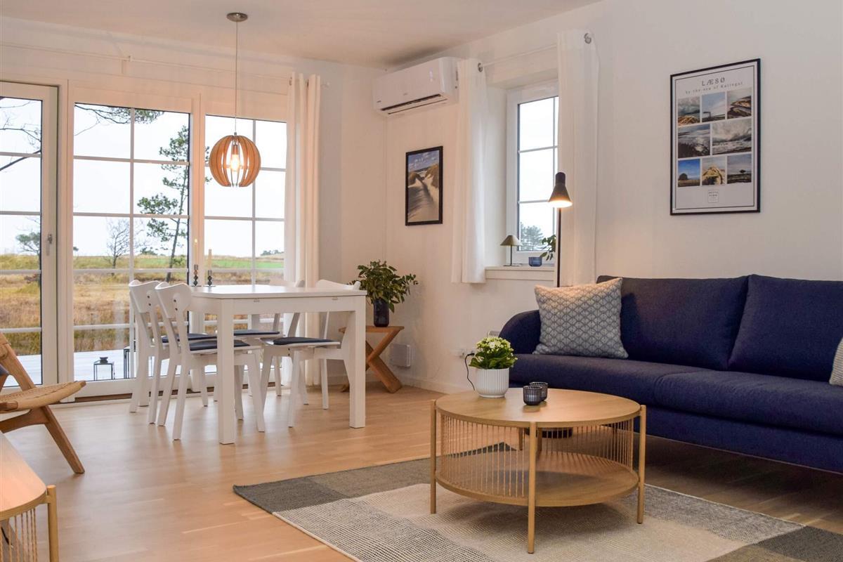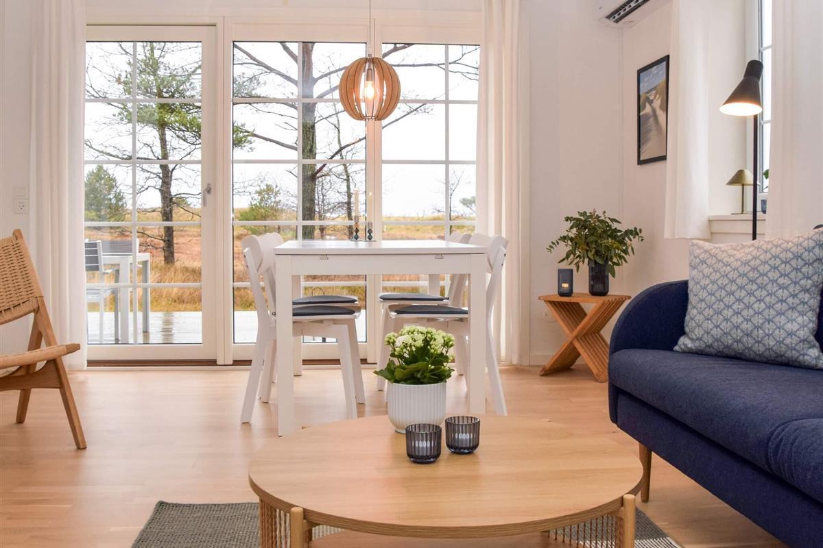 Schöne, helle Doppelhäuser mit zwei Wohnungen von je 50 m² Größe, jedes mit privater Terrasse und Veranda. Innen mit Vorraum, Bad und WC, Küche, Wohnzimmer, Schlafzimmer und Abstellraum ausgestattet. Die Wohnung ist für 3-4 Personen vorgesehen und verfügt selbstverständlich über Glasfaser-Internet, Fernseher mit Chromecast, Wärmepumpe und Küche mit Herd und Backofen, Mikrowelle und Kühl-/Gefrierschrank sowie Kaffeemaschine und Wasserkocher.