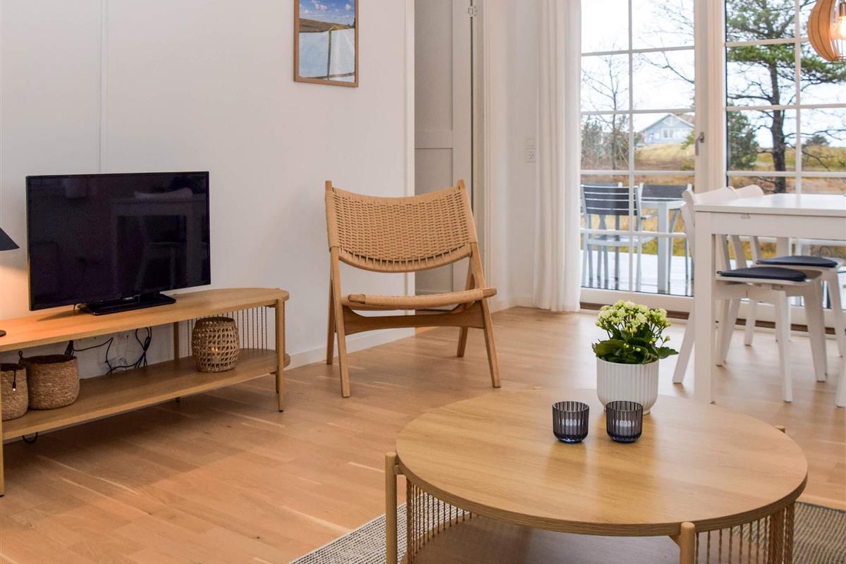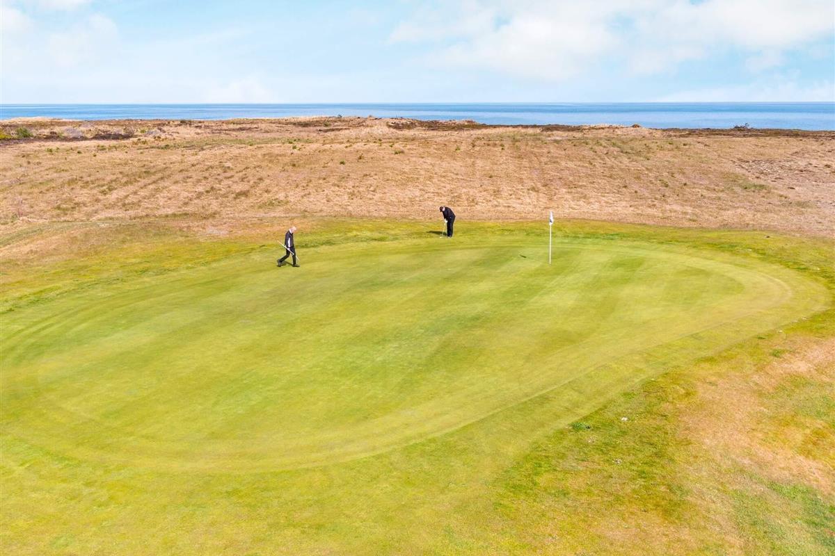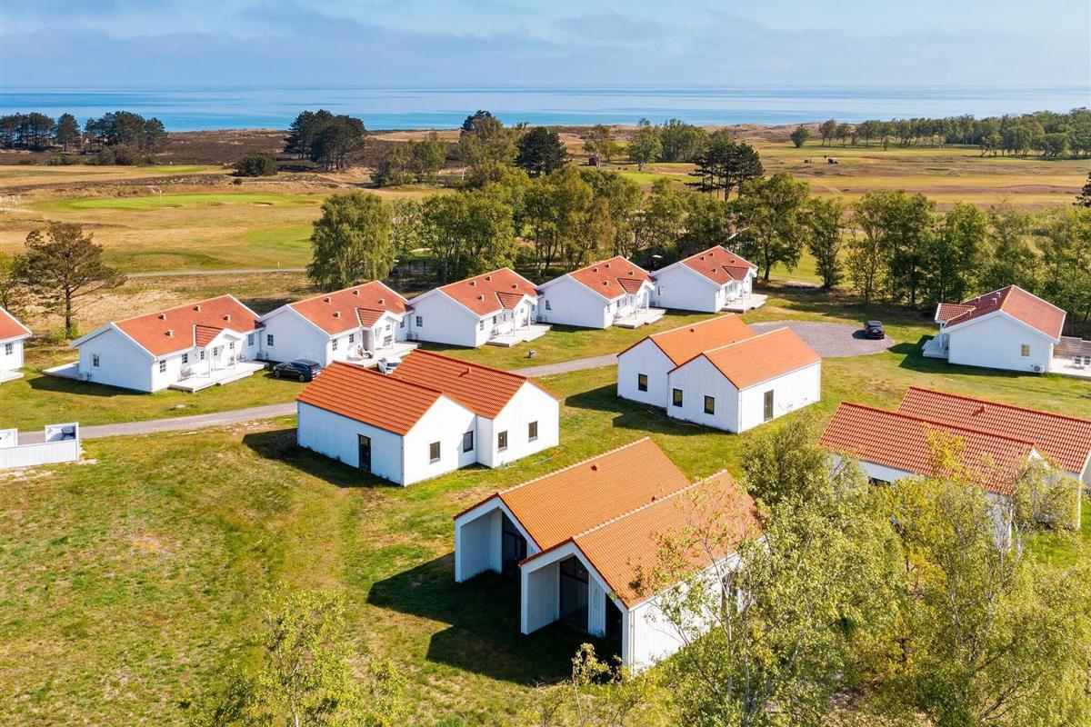 Eines von mehreren renovierten Ferienhäusern mit allen Annehmlichkeiten und einer einzigartigen Lage mit einem fantastischen, gepflegten 18-Loch-Golfplatz als Nachbarn. Sie wohnen hier zudem nur wenige hundert Meter vom Kattegat und einem ausgezeichneten Strand entfernt.