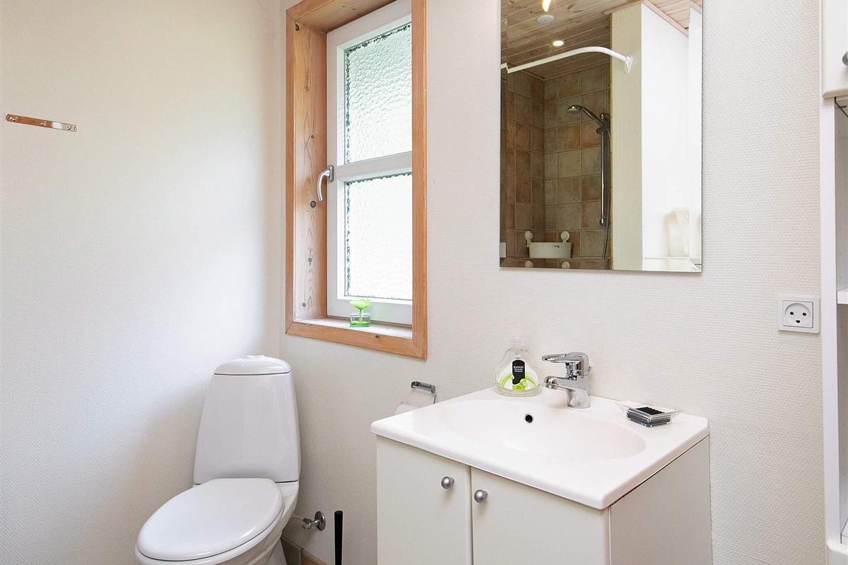 Ferienhaus mit Sauna für die Erholung im Bad. Liegt in landschaftlich reizvoller und ruhige Umgebung, auf einem sonnigen Naturgrundstück mit Bäumen ringsum auf der Ostseeinsel Læsø.
