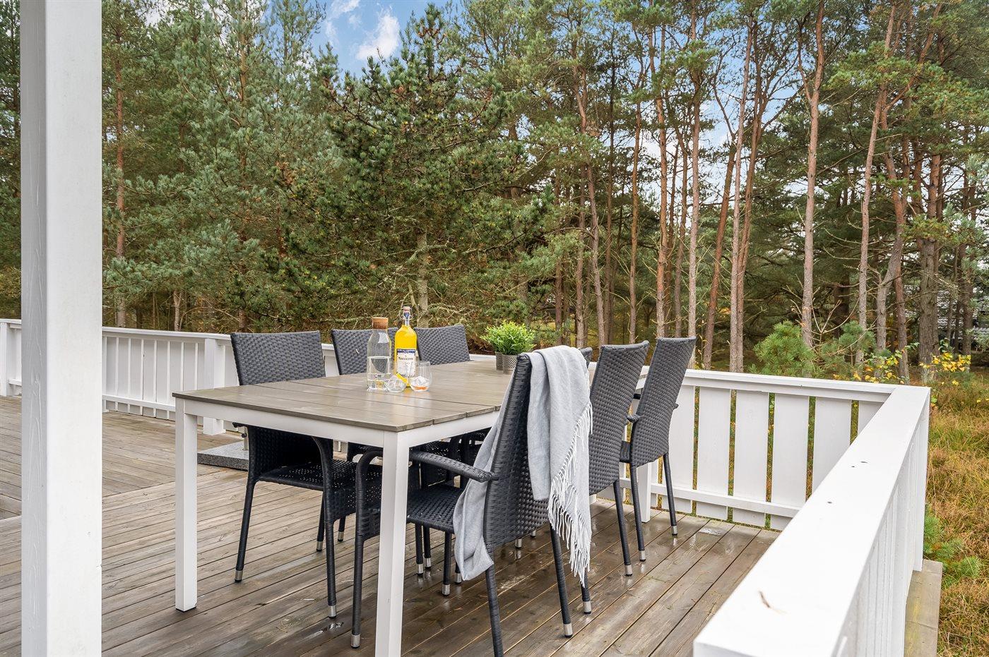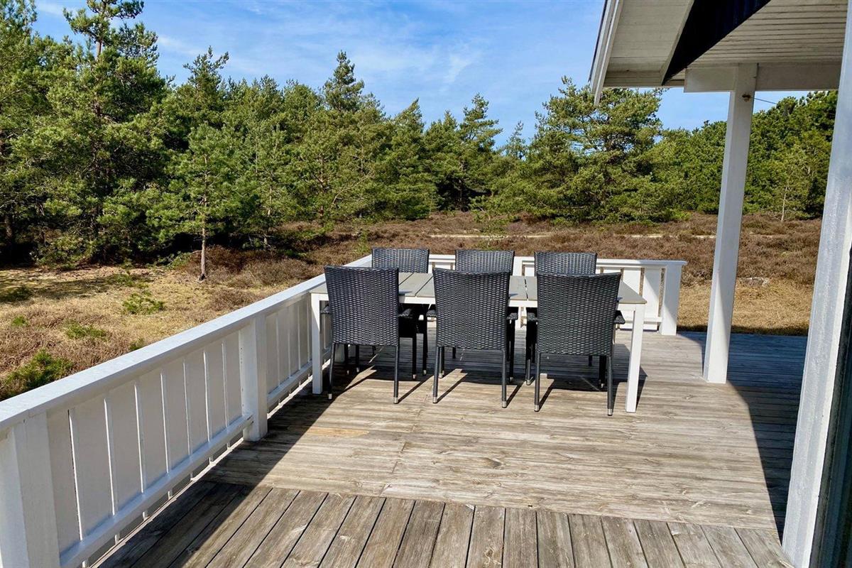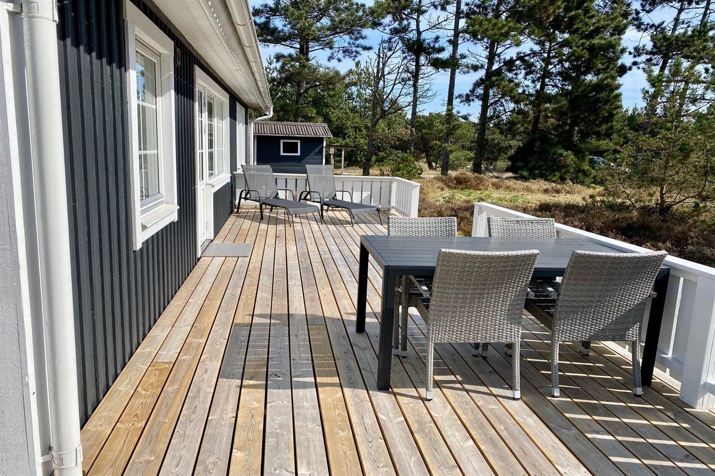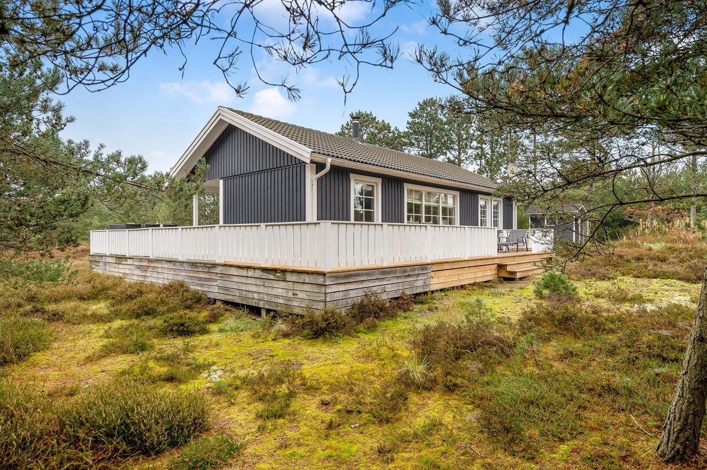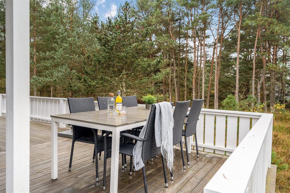 De vakantiewoning is gelegen op een 2596 m² groot natuural grond. Afstand tot de zee 300 m. Dichtstbijzijnde winkel 1000 m. Er is een golfbaan op een afstand van 3000 m. Bij de vakantiewoning hoort 25 m² terras. Daarnaast is er een 5 m² groot overdekt terras. Gereedschapsruimte. Parkeerplaats bij het huis.