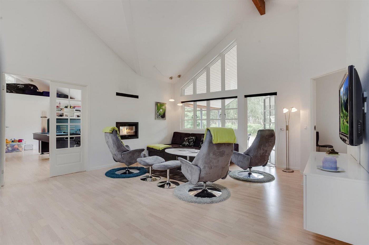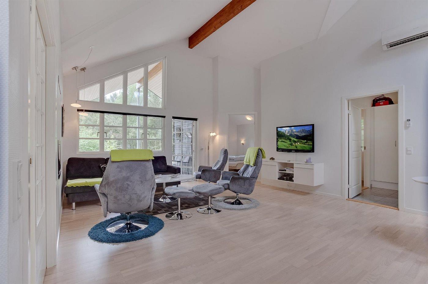 In de vakantiewoning is aanwezig televisie.1 Chromecast. DVD-speler. Radio. CD-speler. Tenminste 4 deense zenders. Tenminste 4 zweedse zenders. Tenminste 4 duitse zenders. Draadloos internet.