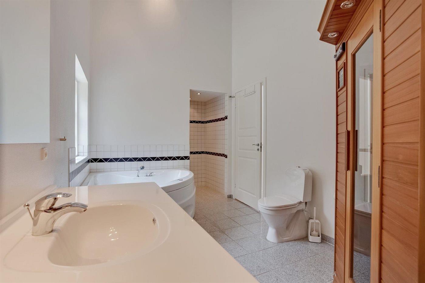 Er is 2 badkamers met douchehok en 2 toiletten. Er is vloerverwarming in 2 van de badkamers. De sauna biedt de gelegenheid tot ontspanning.