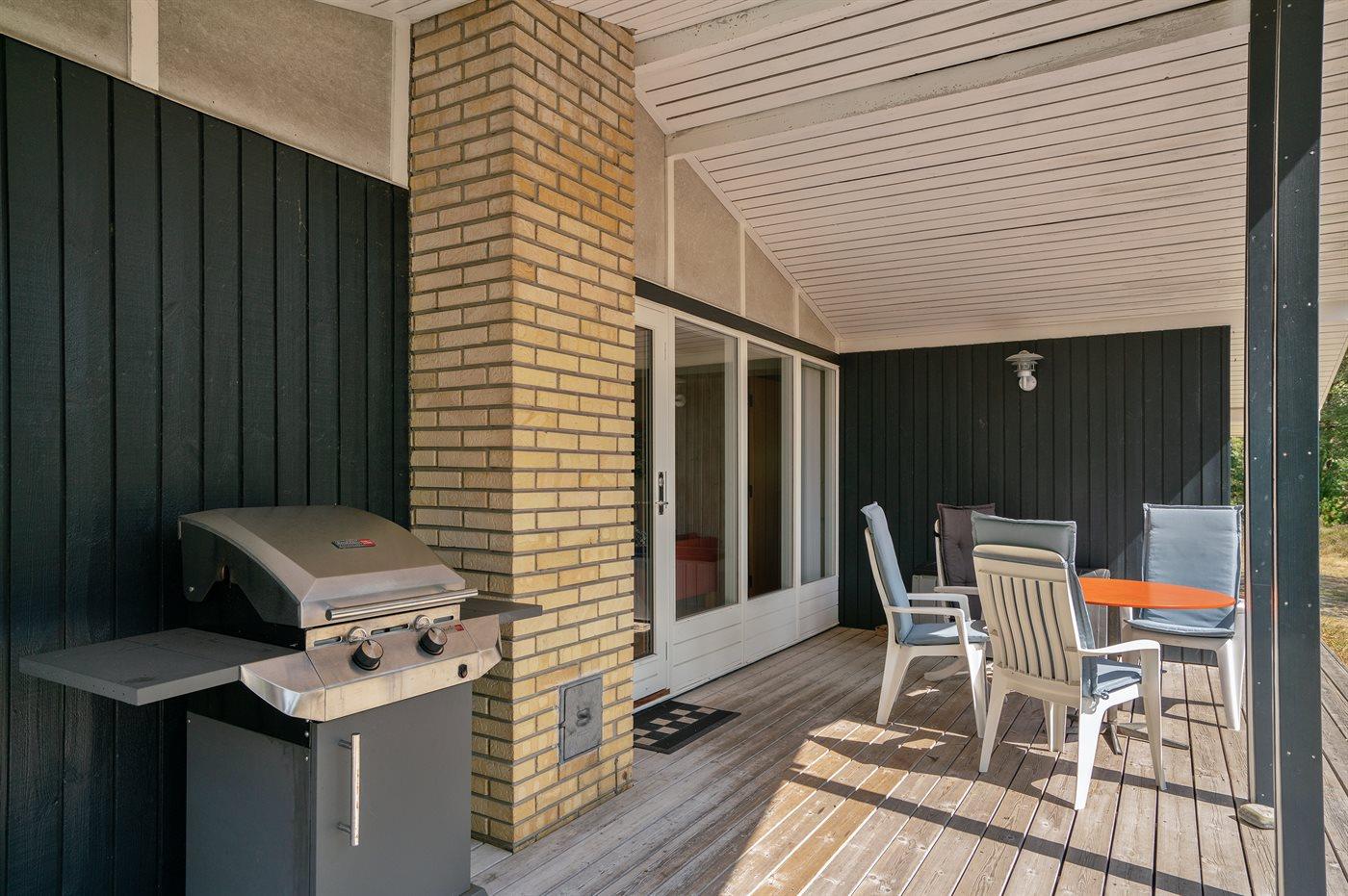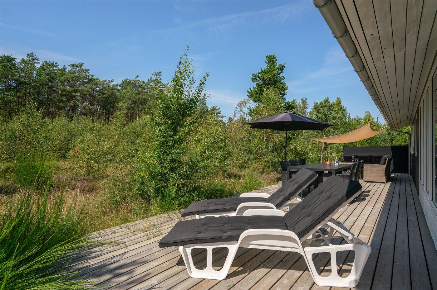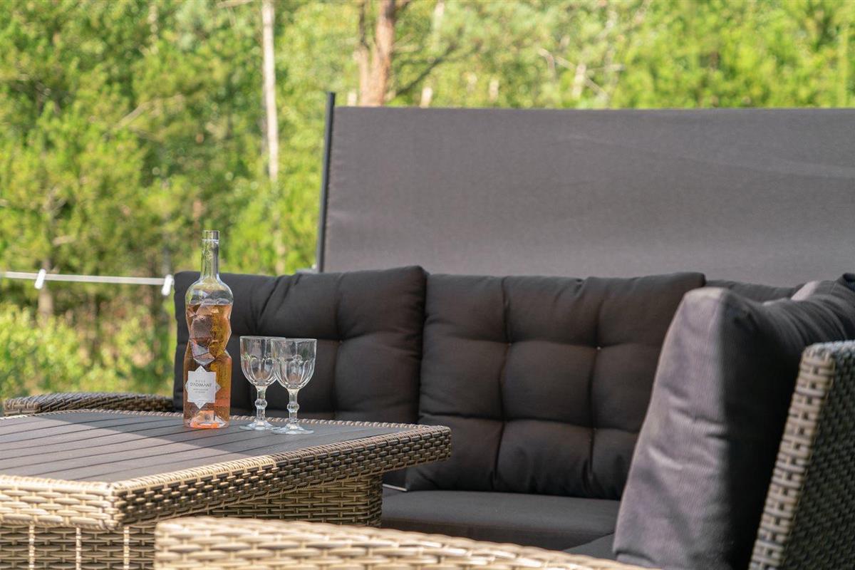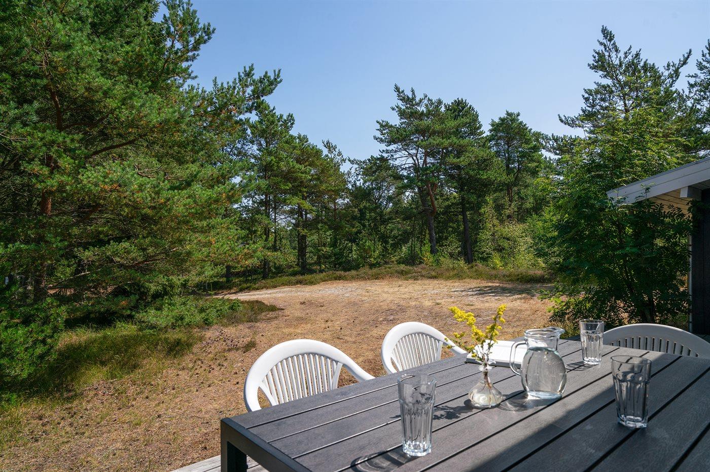 De vakantiewoning is gelegen op een 5090 m² groot natuural grond. Afstand tot de zee 600 m. Dichtstbijzijnde winkel 900 m. Er is een golfbaan op een afstand van 3500 m. Bij de vakantiewoning hoort 70 m² terras. Daarnaast is er een 20 m² groot overdekt terras. Gereedschapsruimte. Er is een Weber gasbarbecue beschikbaar. Parkeerplaats bij het huis.