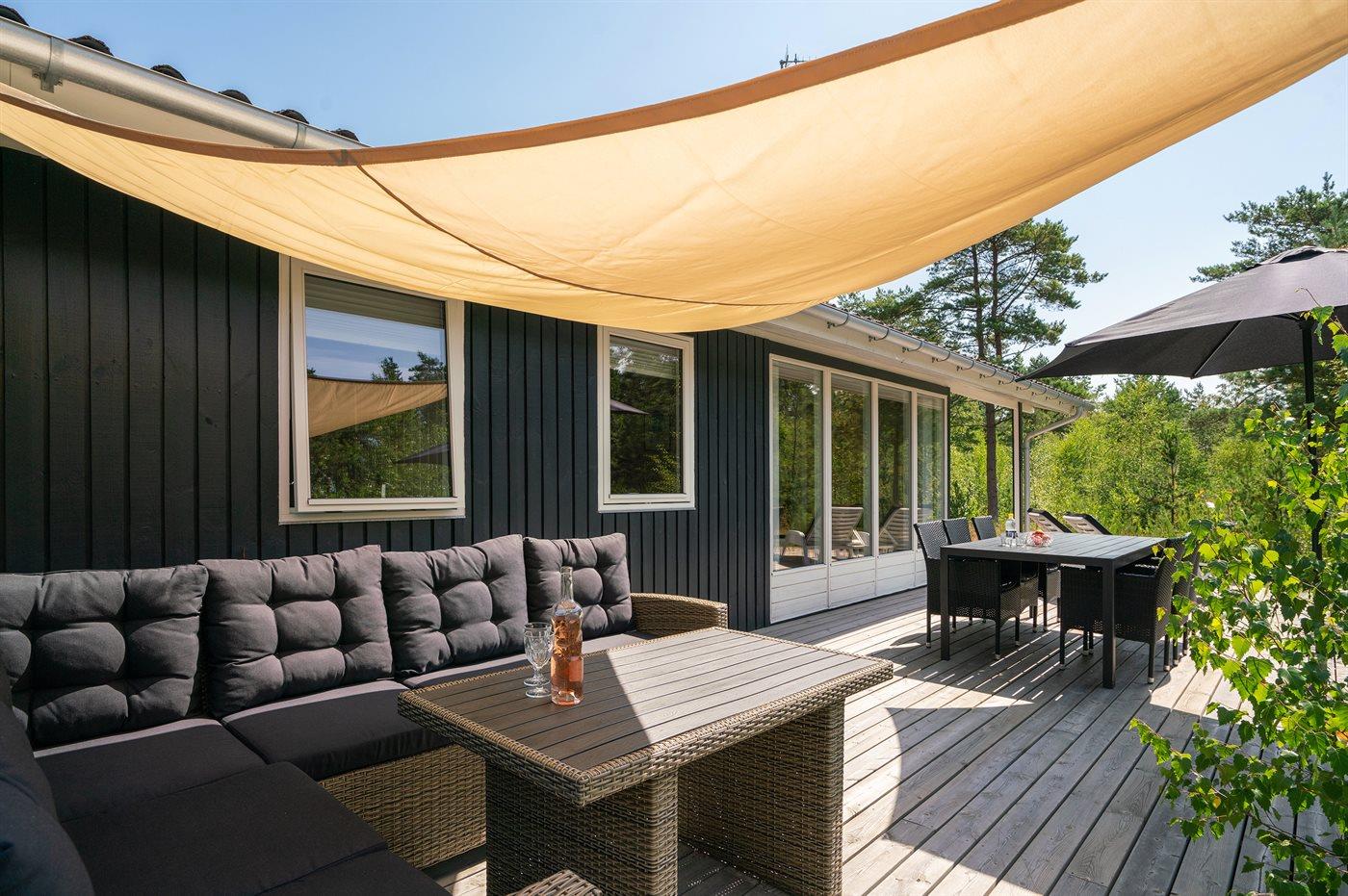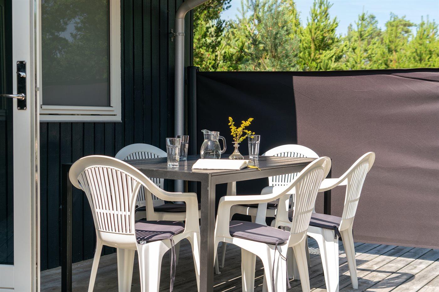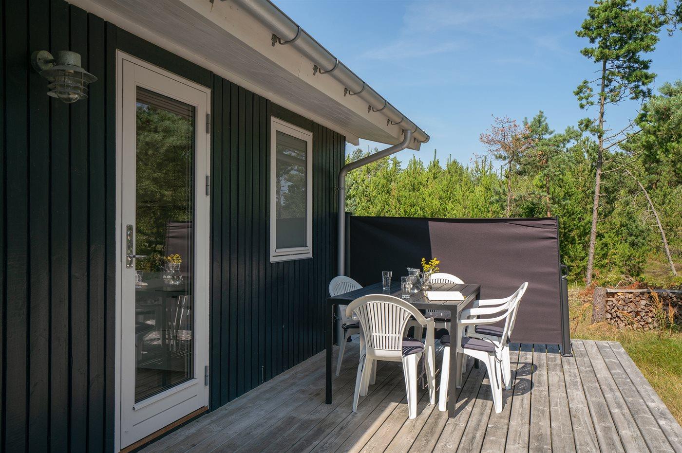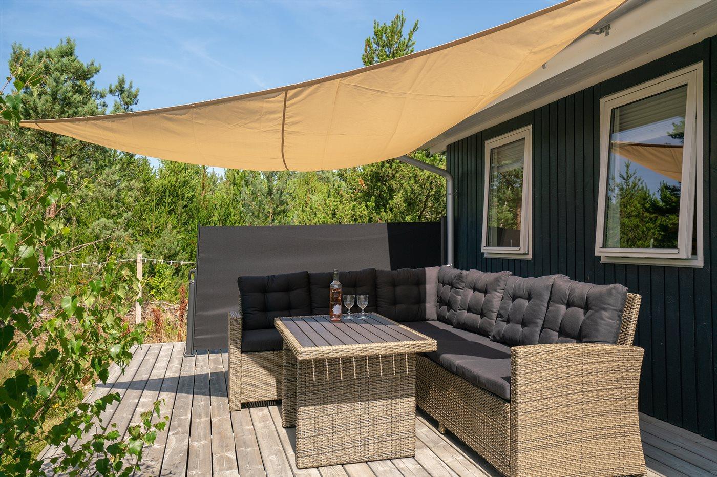 De vakantiewoning is gelegen op een 5090 m² groot natuural grond. Afstand tot de zee 600 m. Dichtstbijzijnde winkel 900 m. Er is een golfbaan op een afstand van 3500 m. Bij de vakantiewoning hoort 70 m² terras. Daarnaast is er een 20 m² groot overdekt terras. Gereedschapsruimte. Er is een Weber gasbarbecue beschikbaar. Parkeerplaats bij het huis.