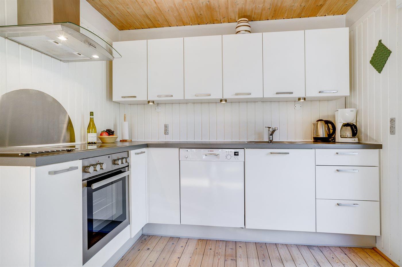 De keuken is uitgerust met koelkast Er zijn 4 keramische kookplaten, heteluchtoven en vaatwasser.