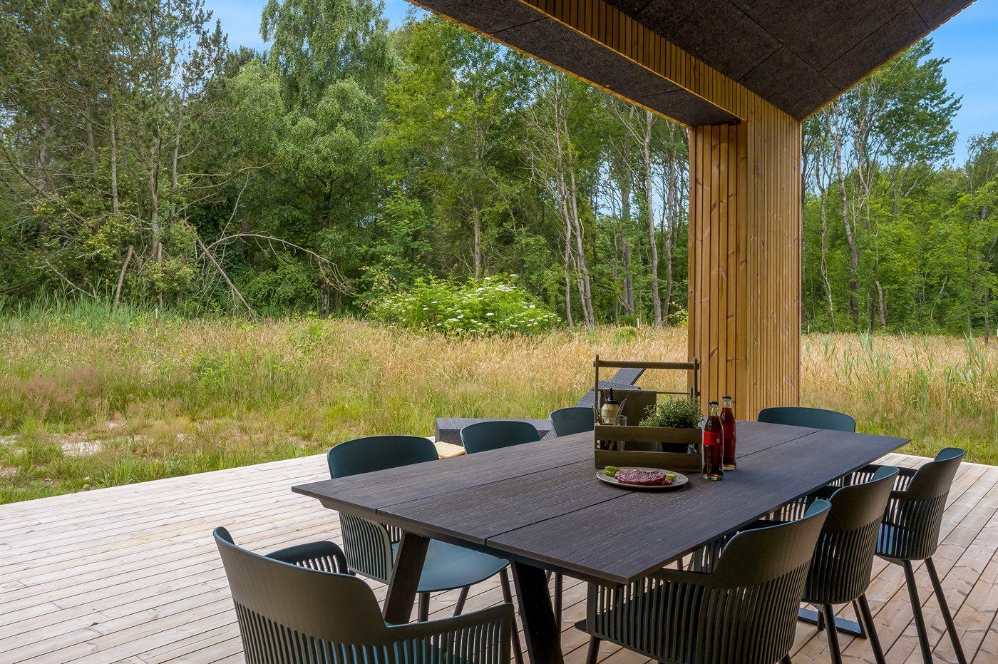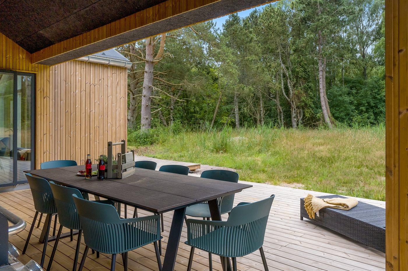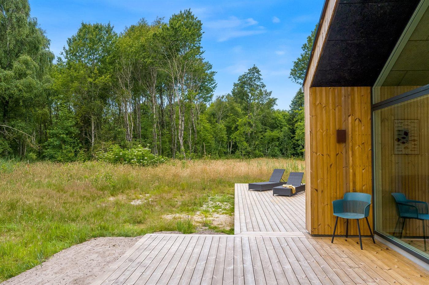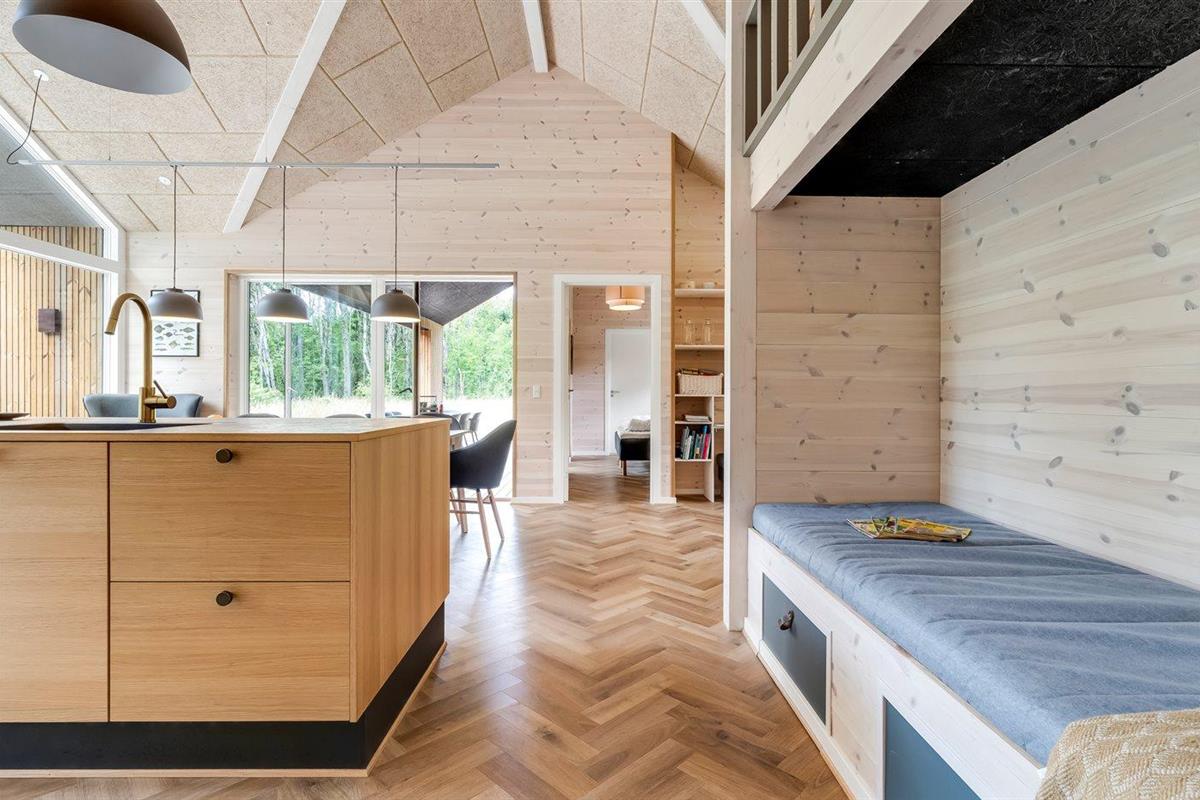 Modern vakantiehuis op Læsø met 3 slaapkamers, vlakbij zee en natuur, inclusief vloerverwarming en overdekt terras.