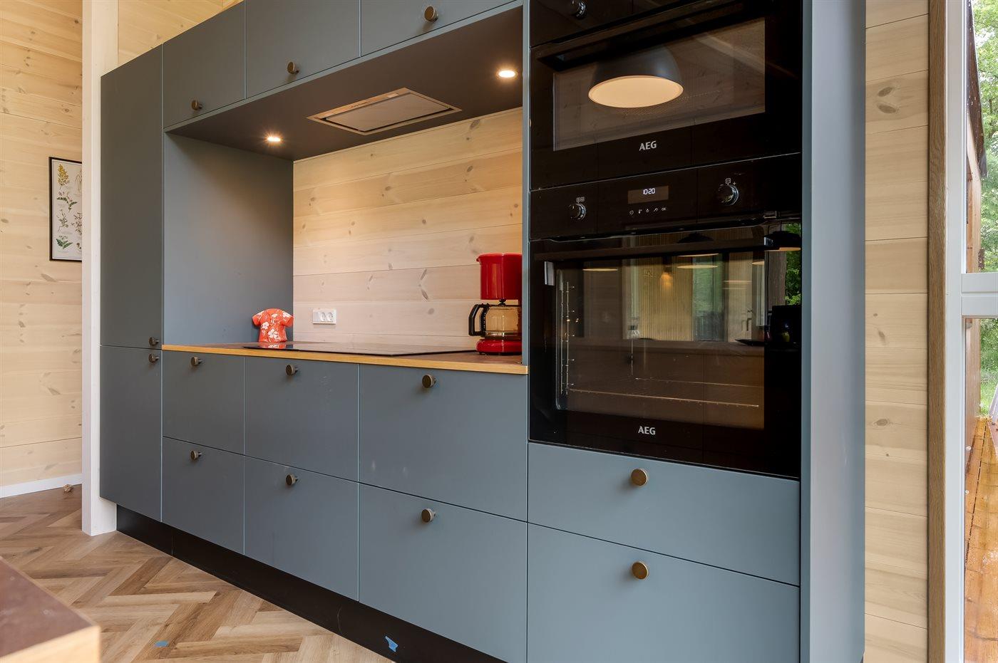 De keuken is uitgerust met koelkast Er is 4 inductiekookplaten, heteluchtoven, magnetron en vaatwasser.
