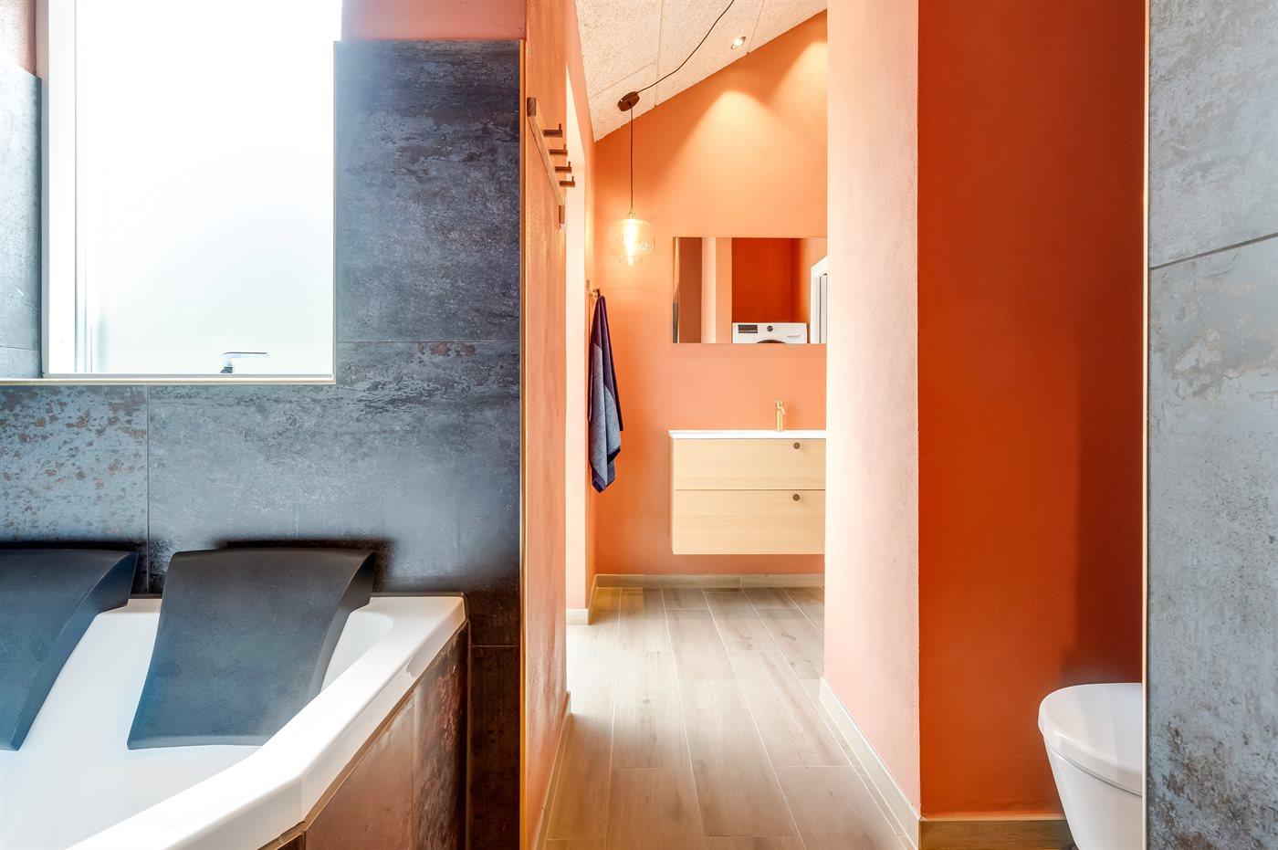 Er is 2 badkamers met douchehok en 2 toiletten. Er is vloerverwarming in 2 van de badkamers.. Badkuip.