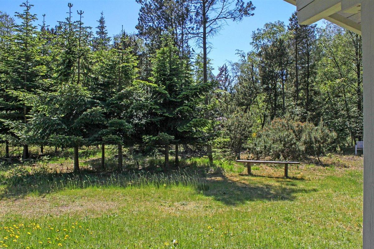Comfortabel vakantiehuis op groot bosrijk perceel nabij zee, met houtkachel en overdekt terras.