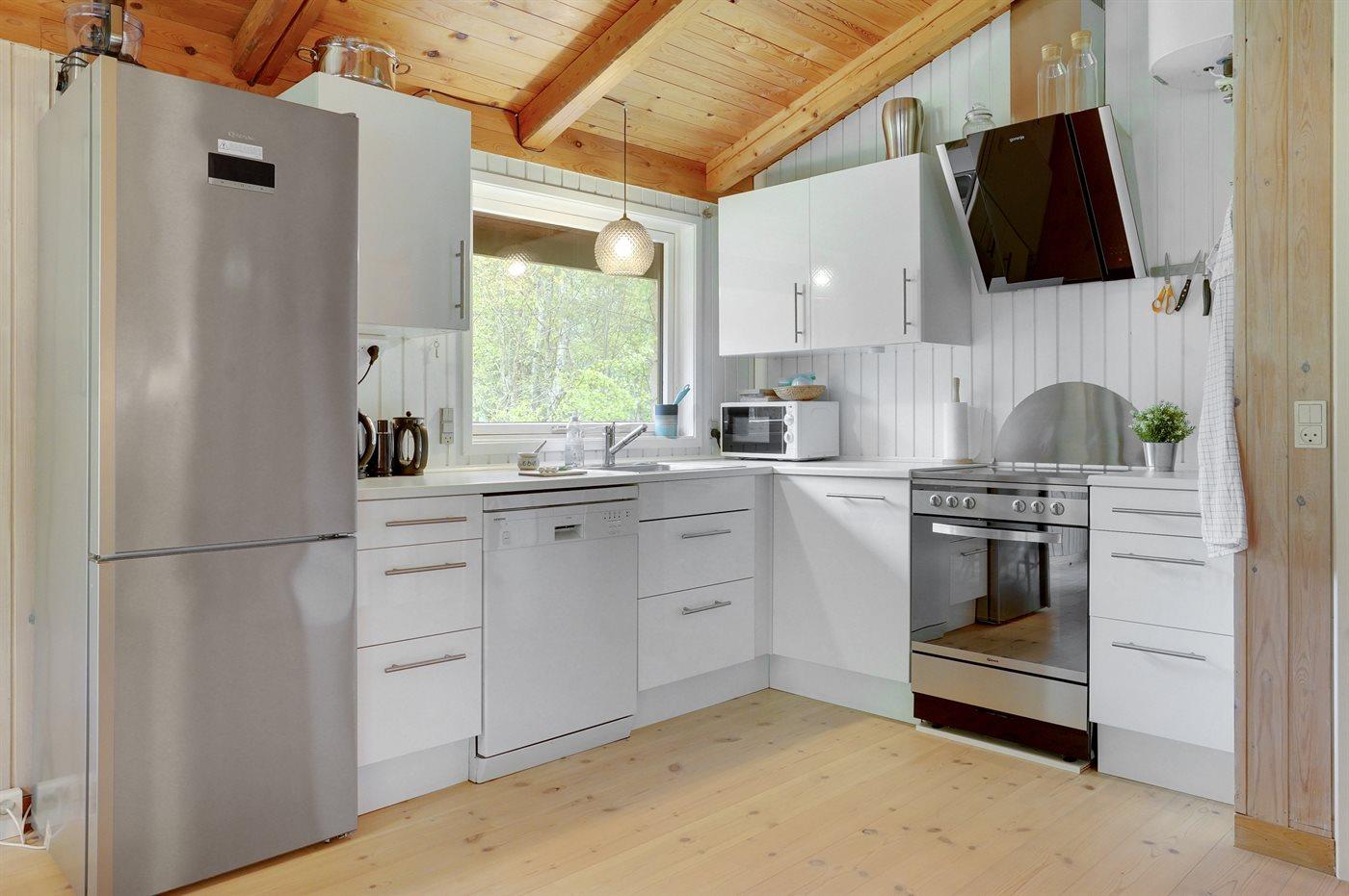 De keuken is uitgerust met koelkast Er zijn 4 keramische kookplaten, heteluchtoven, magnetron en vaatwasser.