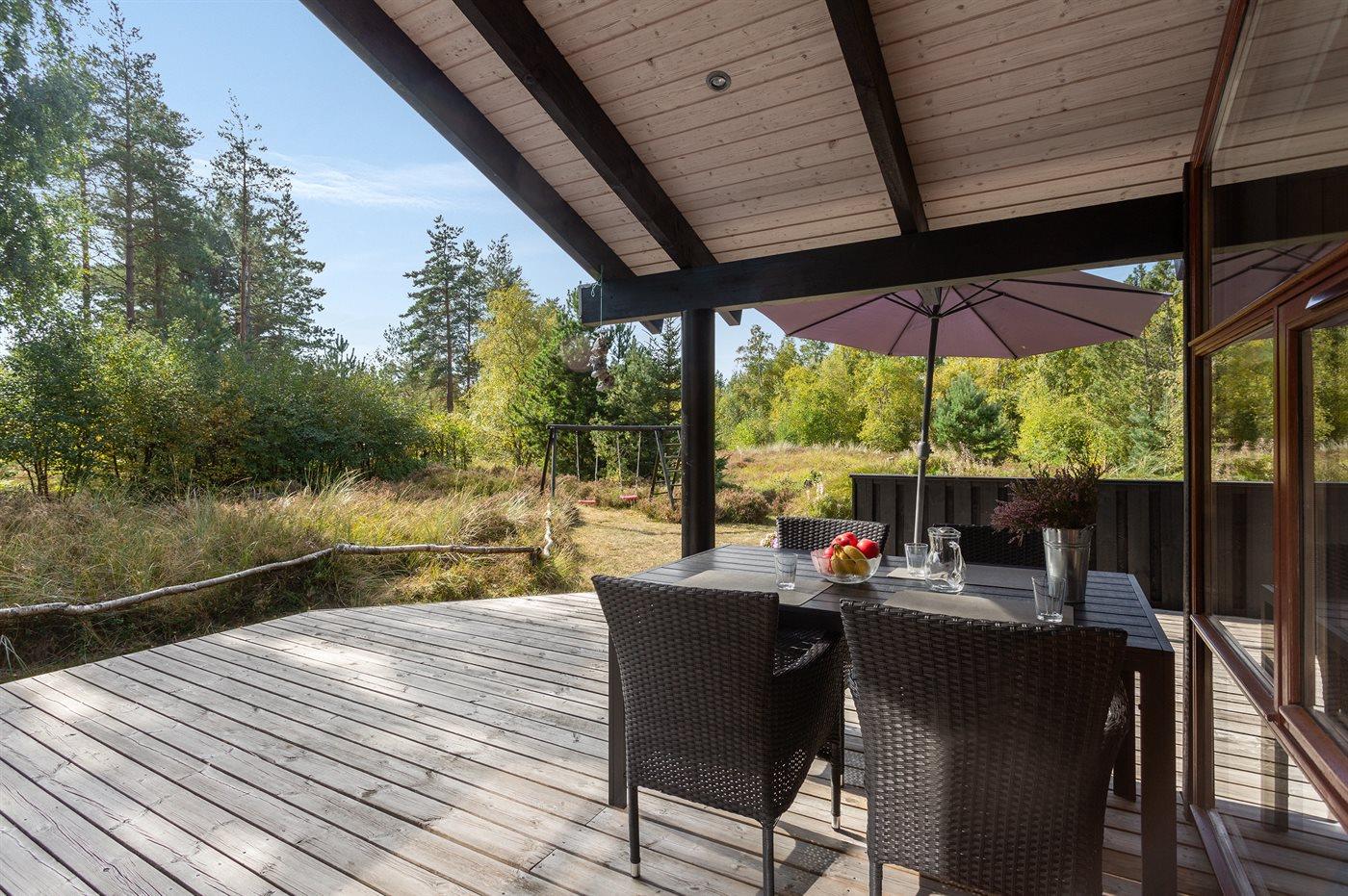 De vakantiewoning is gelegen op een 3600 m² groot natuural grond. Afstand tot de zee 400 m. Dichtstbijzijnde winkel 2000 m. Er is een golfbaan op een afstand van 1000 m. Bij de vakantiewoning hoort 60 m² terras. Daarnaast is er een 10 m² groot overdekt terras. Gereedschapsruimte. Schommel. Zandbak. Voetbaldoel. Parkeerplaats bij het huis.