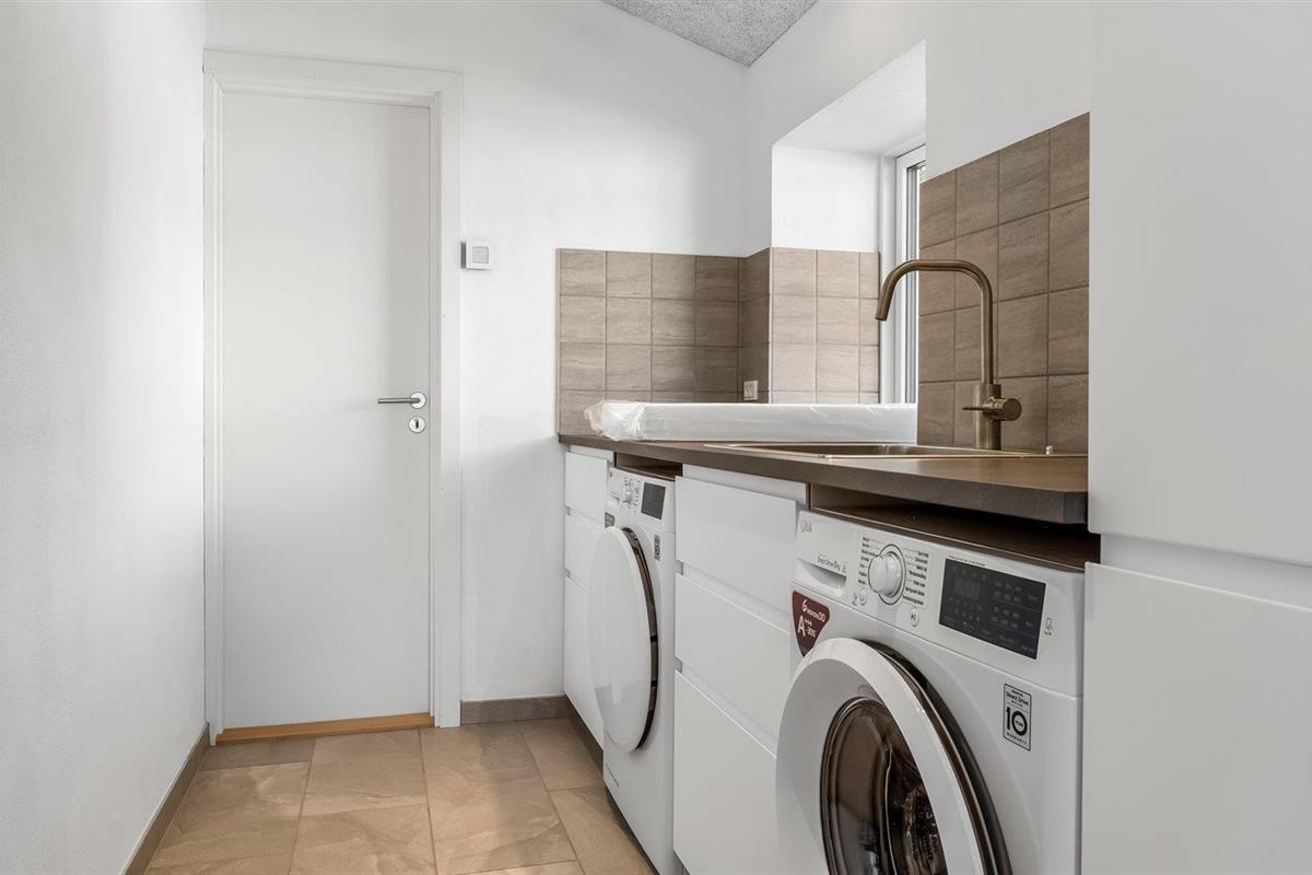 Er is 2 badkamers met douchehok en 2 toiletten. Er is vloerverwarming in 2 van de badkamers.