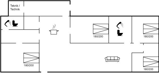 De vakantiewoning is gelegen op een 20000 m² groot natuural grond. Afstand tot de zee 400 m. Dichtstbijzijnde winkel 5000 m. Er is een golfbaan op een afstand van 2000 m. Bij de vakantiewoning hoort terras. Schommel. Barbecue. Parkeerplaats bij het huis.