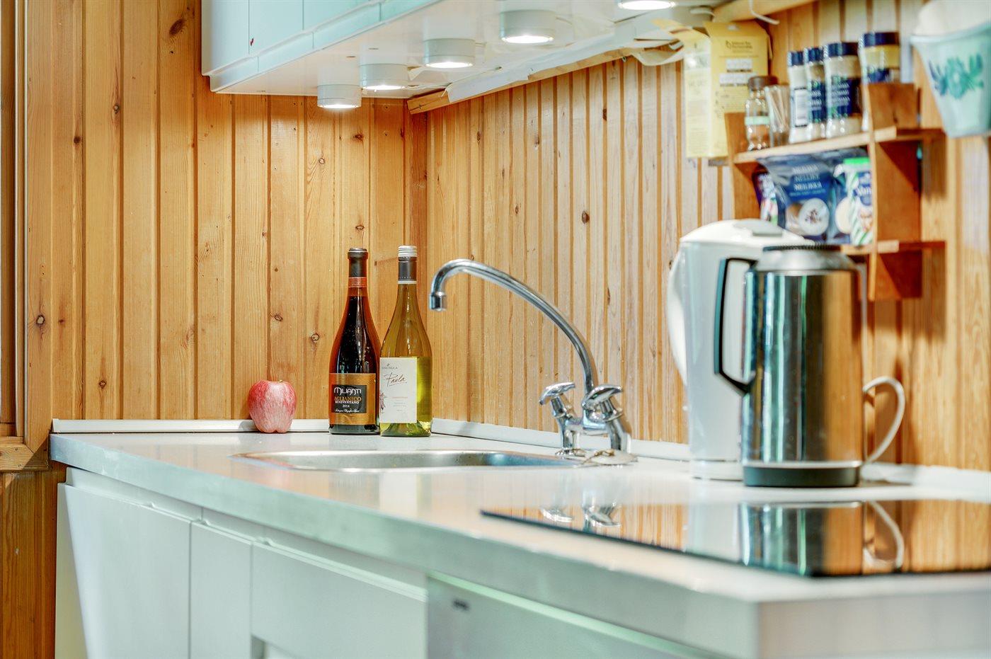 De keuken is uitgerust met koelkast Er is 4 elektrische kookplaten, heteluchtoven en vaatwasser.
