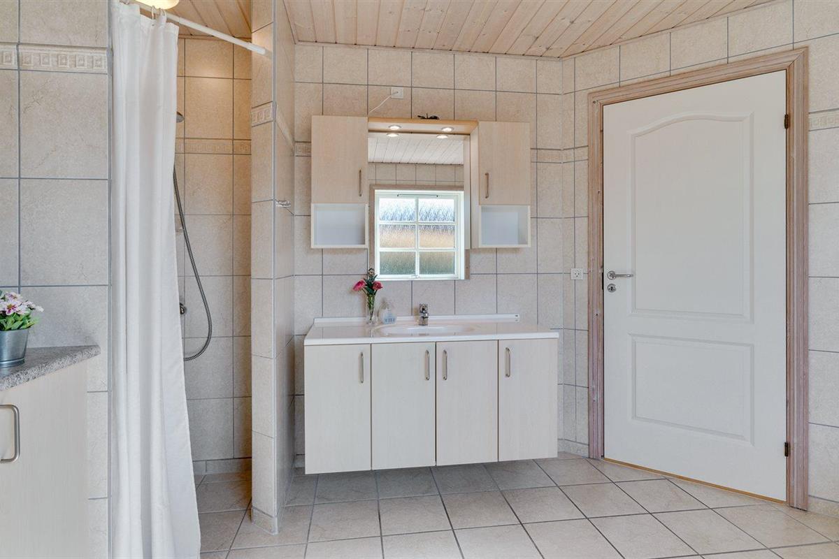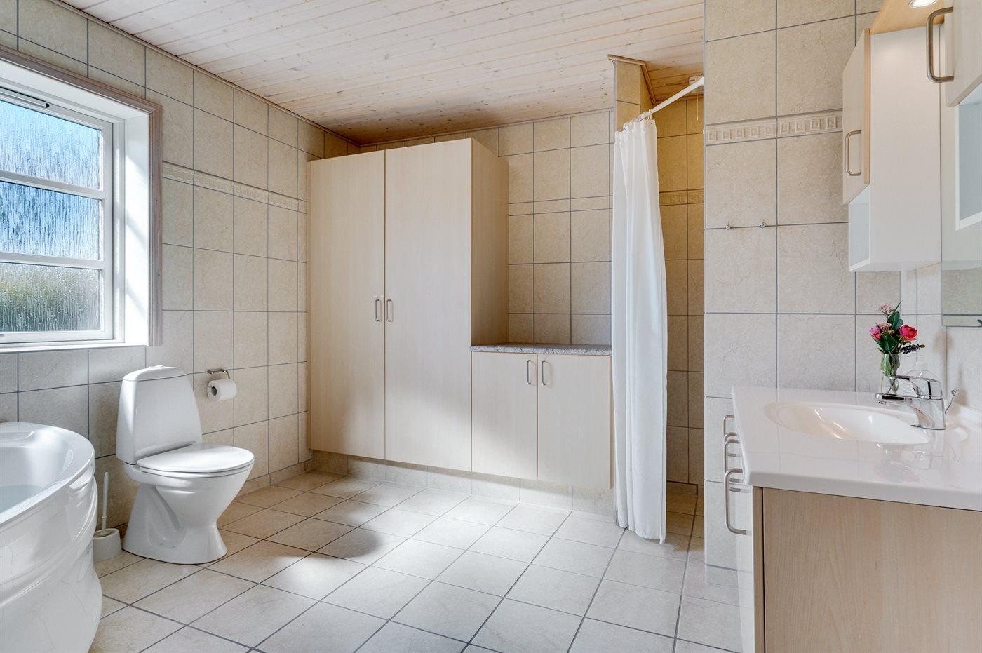 Er is 1 badkamers met vloerverwarming, douchehok en badkuip en 1 badkamer met douchehok.