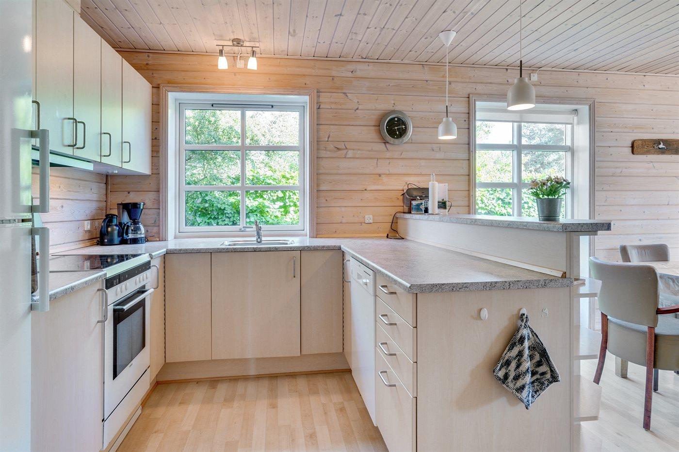 De keuken is uitgerust met koelkast Er zijn 4 keramische kookplaten, heteluchtoven en vaatwasser.