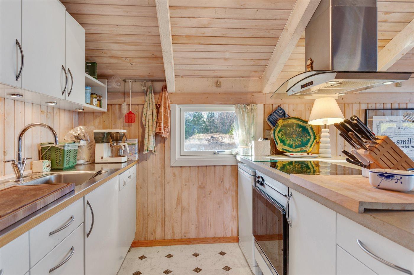 De keuken is uitgerust met koelkast Er is 4 elektrische kookplaten, heteluchtoven en vaatwasser.
