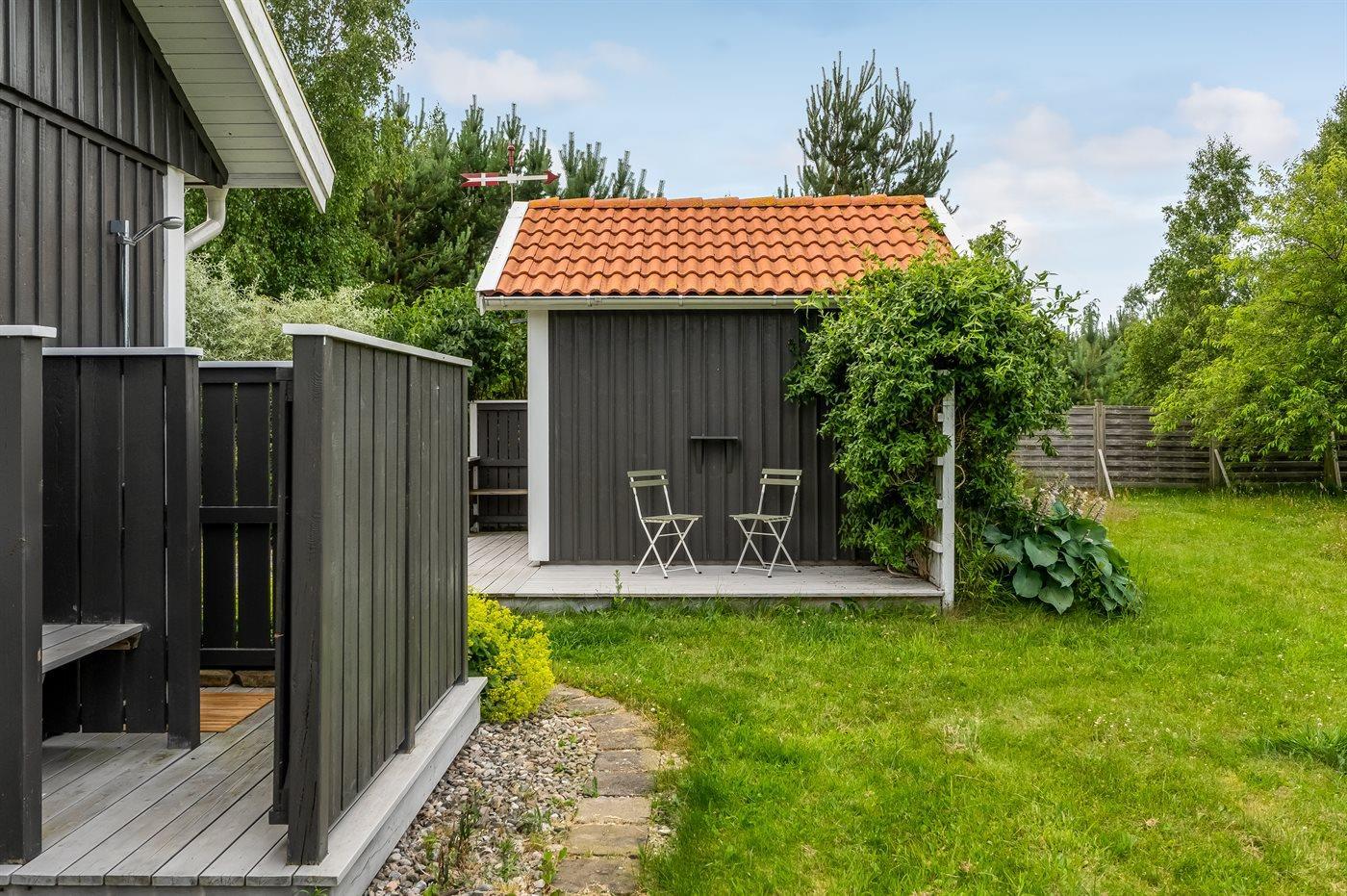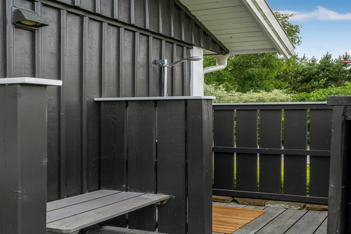 De vakantiewoning is gelegen op een 2039 m² groot aangelegde tuin. De grond is omheind. Afstand tot de zee 800 m. Dichtstbijzijnde winkel 1400 m. Er is een golfbaan op een afstand van 7200 m. Bij de vakantiewoning hoort terras. Daarnaast is er een overdekt terras. Tevens heeft u de beschikking over een serre. Afstand tot speelplaats 1400 m. Buitendouche. Barbecue. Carport ter beschikking. Het huis heeft een stopcontact voor het opladen van een elektrische auto. CEE-stekker. Met 11 kW-laadvermogen. Parkeerplaats bij het huis.