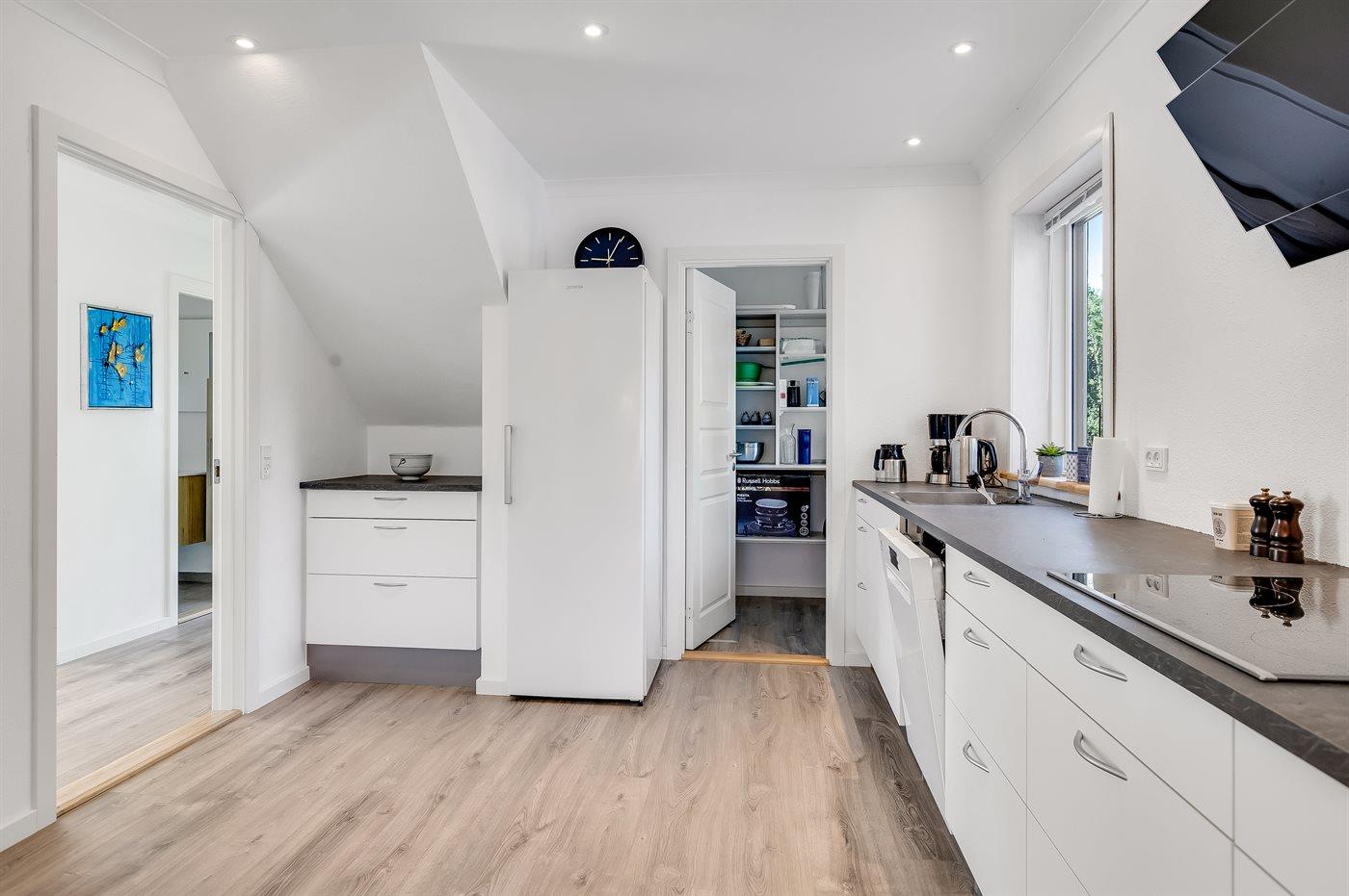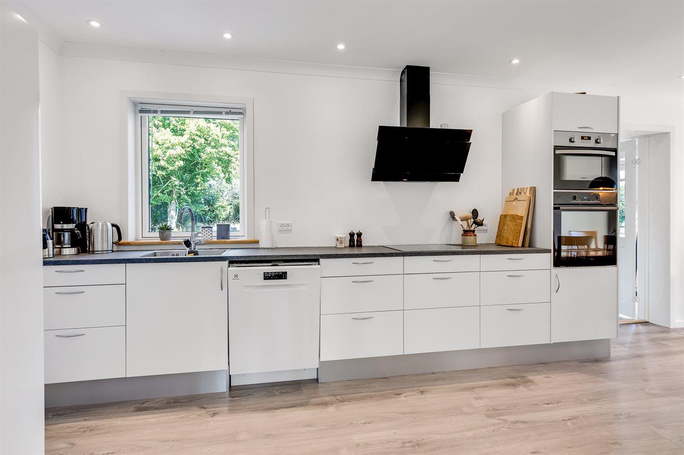 De keuken is uitgerust met koelkast Er zijn 4 keramische kookplaten, heteluchtoven, magnetron en vaatwasser. Vloerverwarming in de keuken.