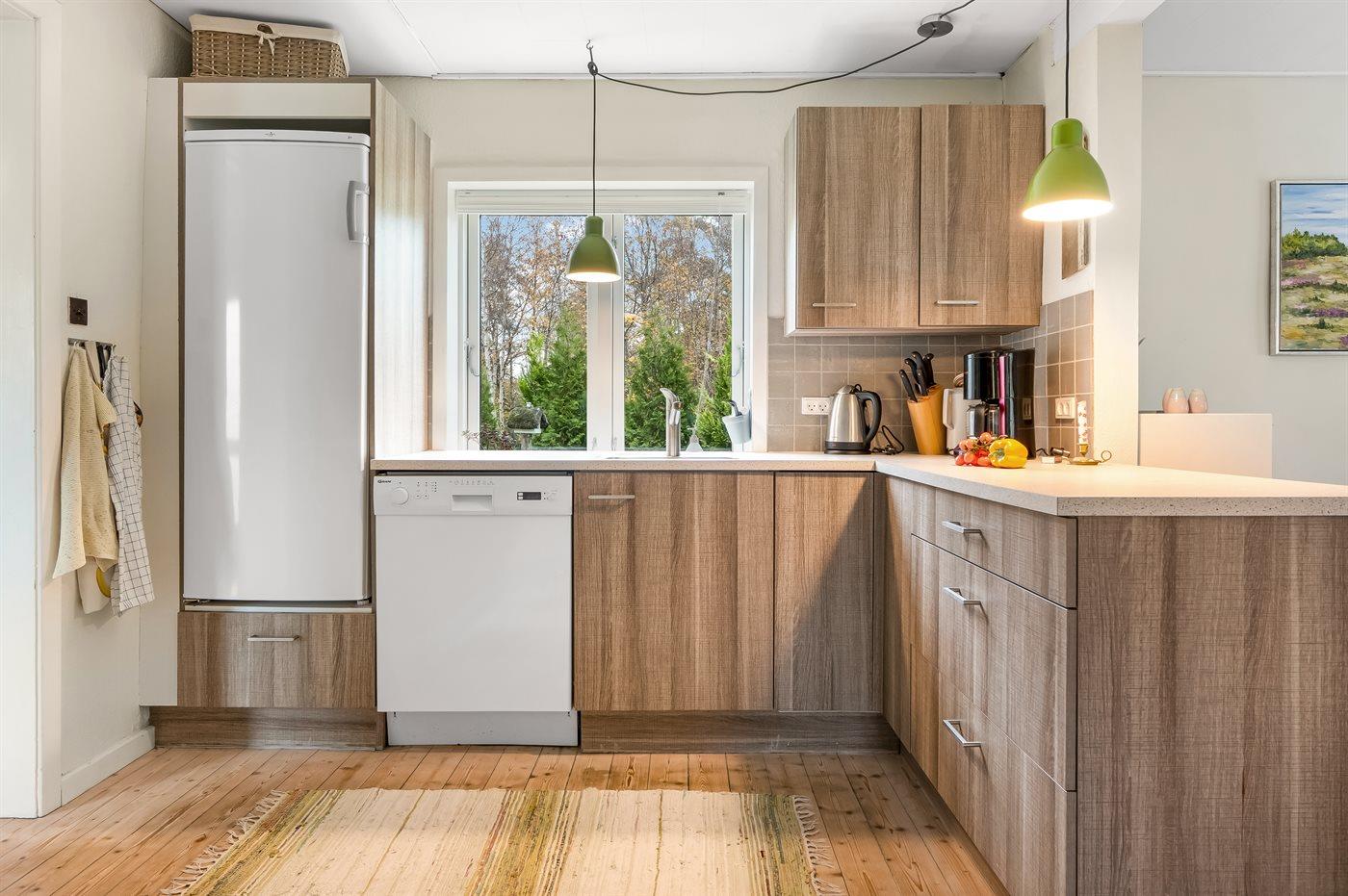 De keuken is uitgerust met koelkast Er is 4 inductiekookplaten, heteluchtoven, magnetron en vaatwasser.