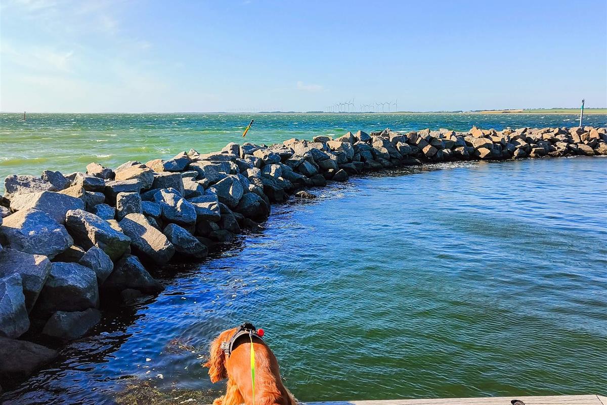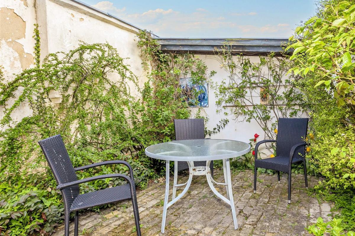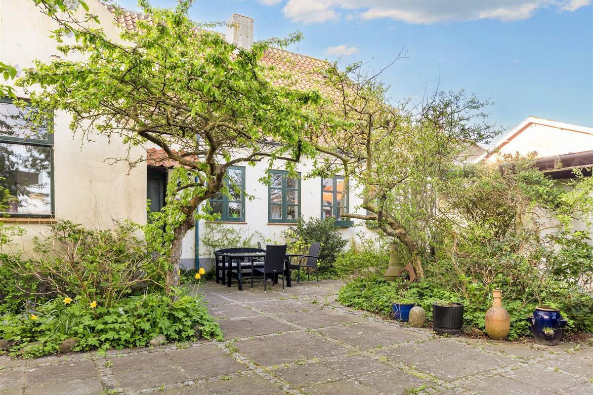 Im Außenbereich eingezäunter Innenhof mit schützenden Bäumen. Vom Haus aus sind es nur wenige Gehminuten in den Ort und zum gemütlichen kleinen Hafen.