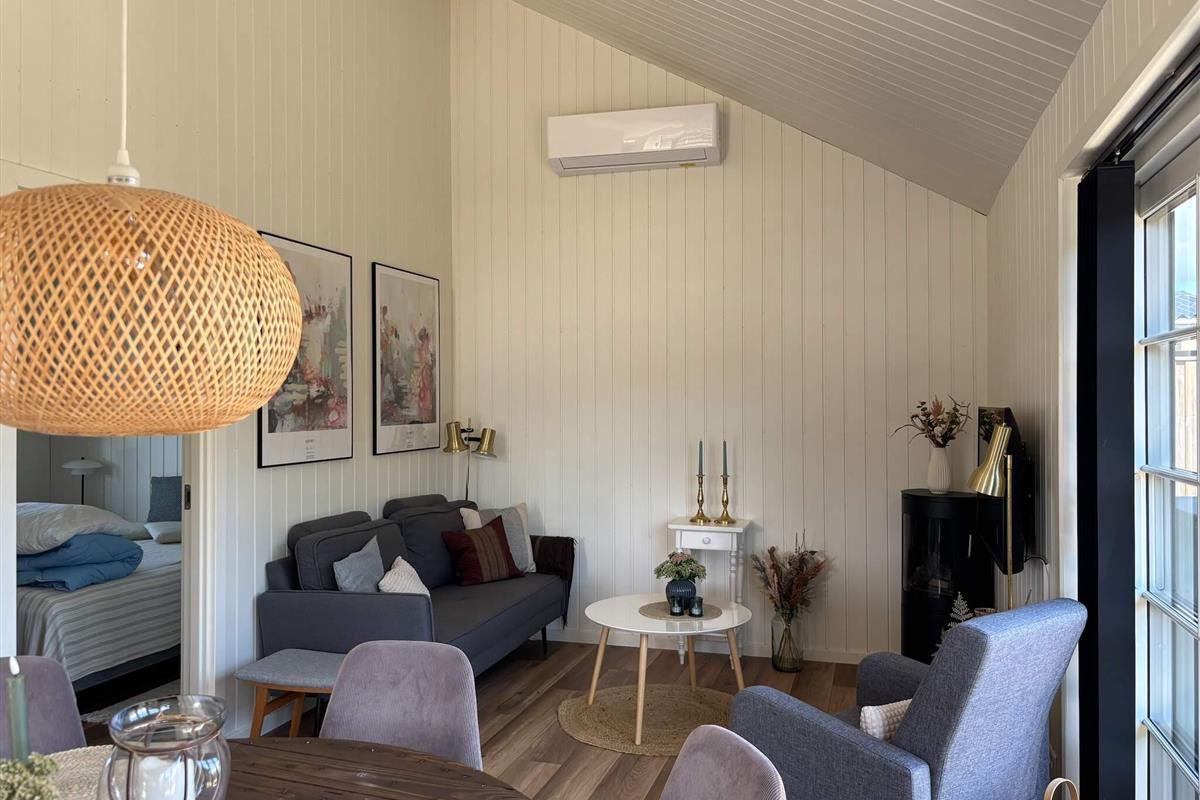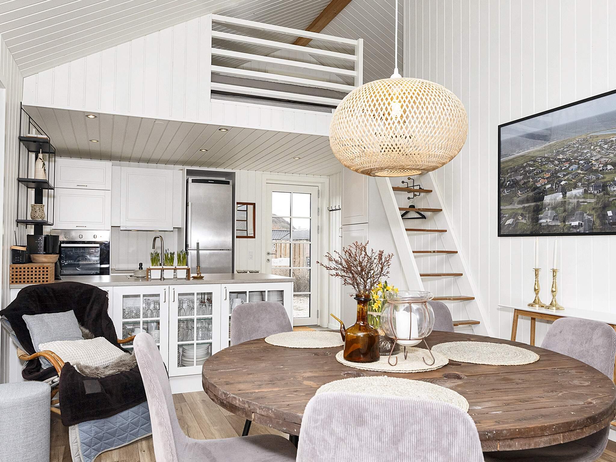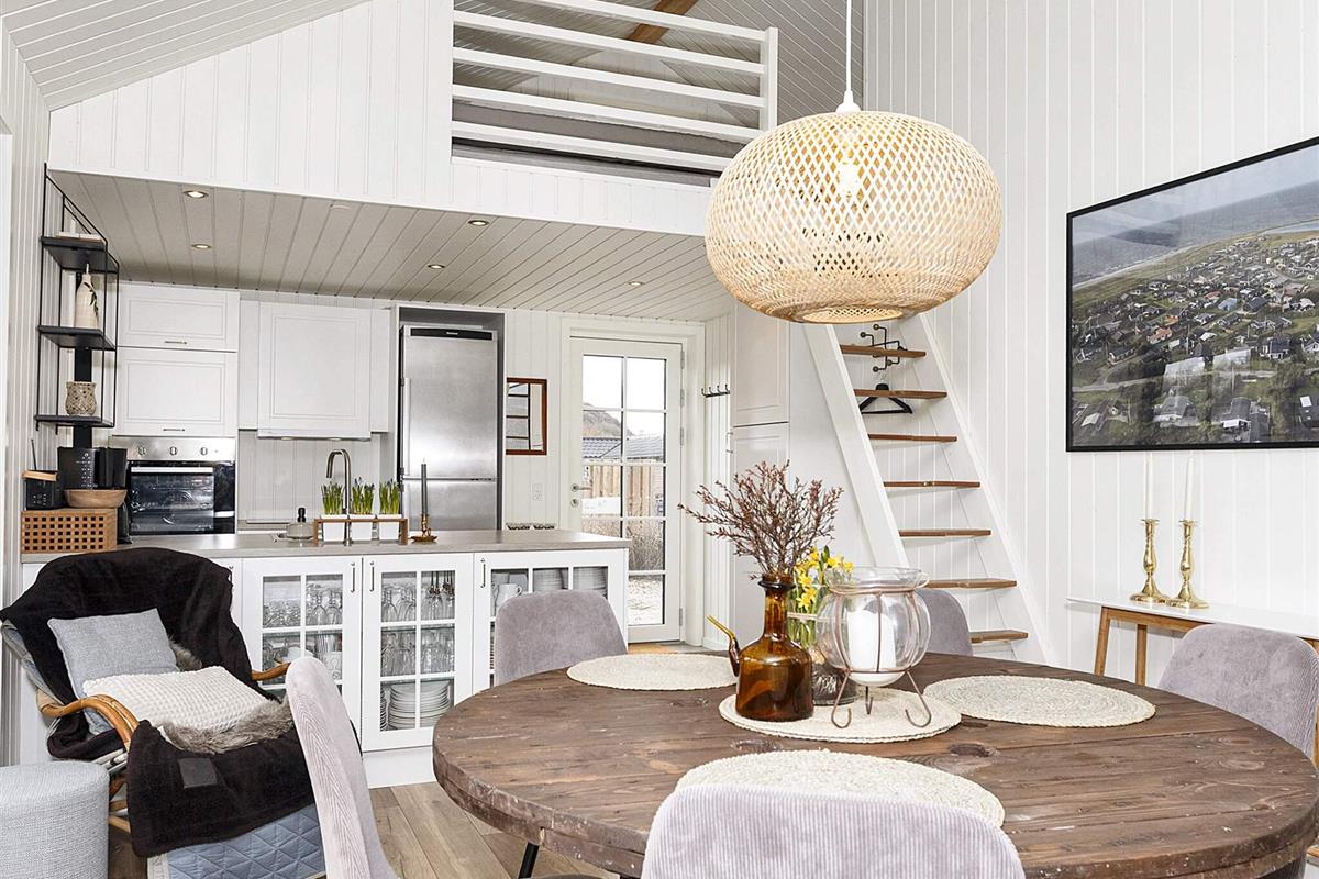 Das gut ausgestattete Ferienhaus verfügt über eine Wohnküche mit Zugang zur Terrasse, zwei Doppelzimmer mit hochwertigen Betten, ein Badezimmer mit Waschmaschine und Regendusche sowie einen Dachboden mit zwei Schlafplätzen. Der Wohnbereich ist bis zum Dachboden offen, was dem Raum ein fantastisches Volumen verleiht. Die Küche ist sehr gut ausgestattet mit Geschirrspüler, Induktionskochfeld, Backofen, Mikrowelle und Kühl-/Gefrierschrank. Das Wohnzimmer verfügt über eine Wärmepumpe und einen Biokamin. Küche und Badezimmer sind mit Fußbodenheizung ausgestattet. Es gibt einen Flachbildfernseher mit der Möglichkeit, über Chromecast für Ihre eigenen TV-Anbieter zu streamen.