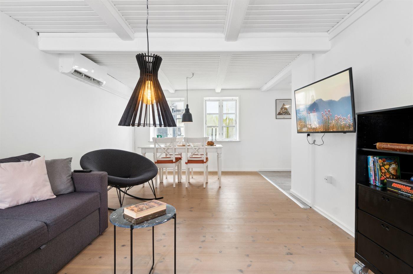 In de vakantiewoning is aanwezig 1 smart-tv. 1-3 deense zenders. Draadloos internet.