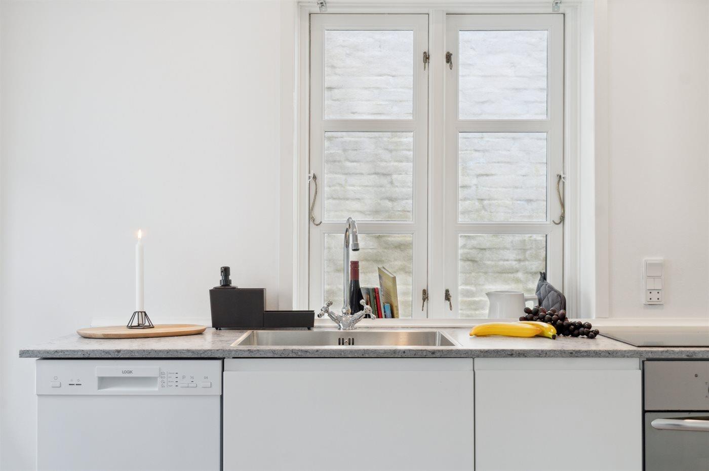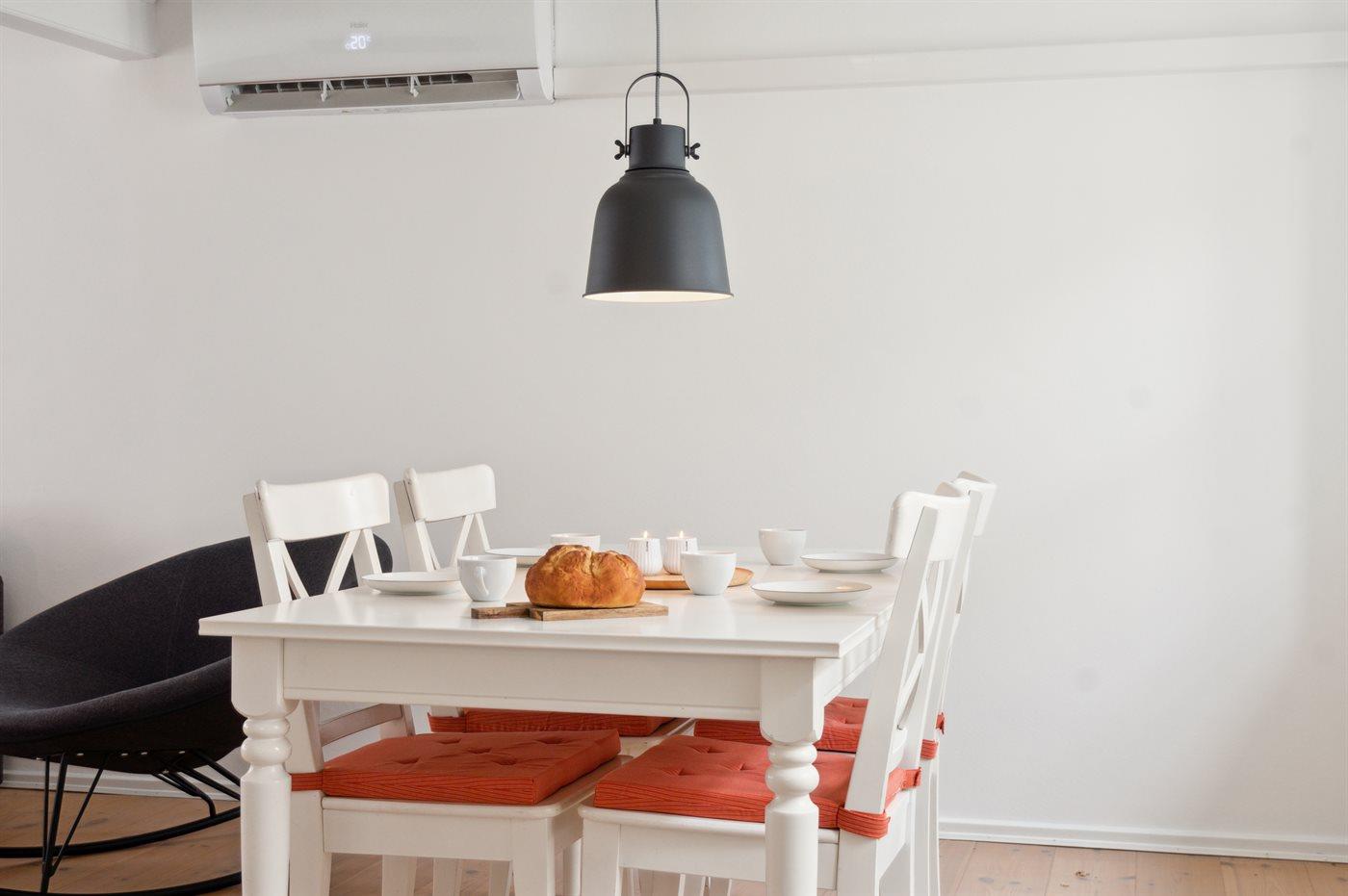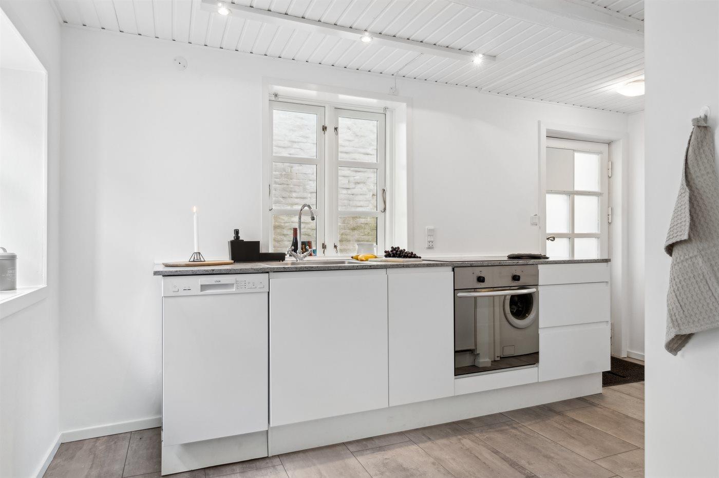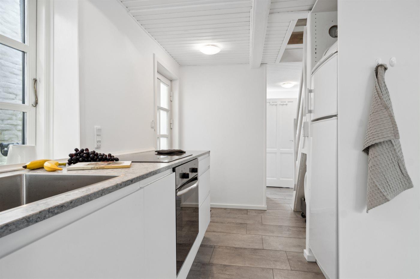 De keuken is uitgerust met koelkast Er is 4 inductiekookplaten, heteluchtoven en vaatwasser.