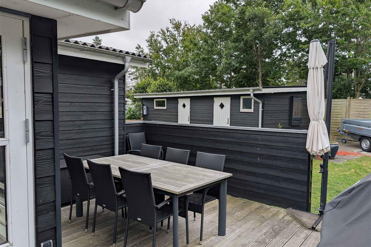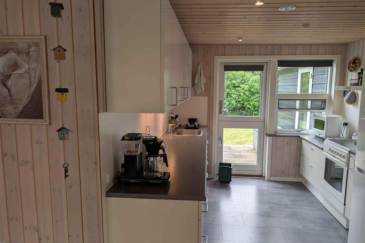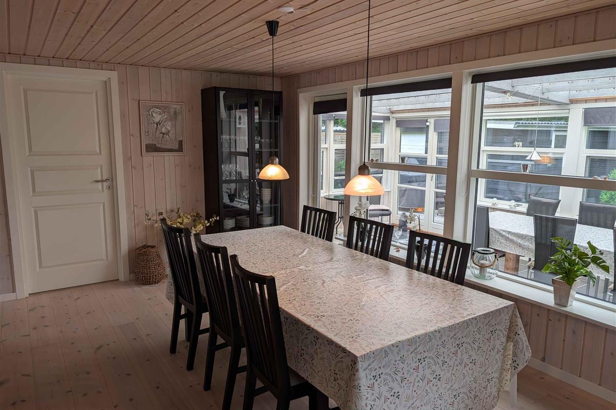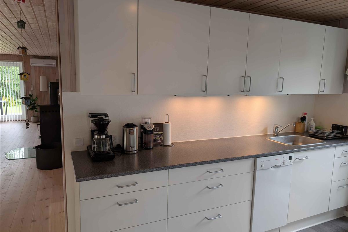 Dit prachtige huis van 116 m² met een serre van 18 m² biedt volop ruimte voor het hele gezin. Het huis is gebouwd in 1969 en in 2007 grondig gerenoveerd en uitgebreid. Het beschikt over een mooie, goed uitgeruste woonkeuken die in open verbinding staat met een grote, ruime woonkamer met een gloednieuwe houtkachel (2025). Er zijn drie slaapkamers met comfortabele tweepersoonsbedden en een kinderkamer met twee stapelbedden. Alle kamers hebben kasten voor kledingopslag. De woning heeft een nette en ruime badkamer met een douchecabine. In de garage tegenover het huis is een goed ingerichte bijkeuken met een grote koelkast en een extra toilet met wasmachine en droger. Op warme zomerdagen kunt u genieten van een barbecue op een van de drie houten terrassen rondom het huis, voorzien van tuinmeubilair. Op koelere dagen is de serre een uitstekend alternatief. De tuin is groot en ruim. In een hoek van de tuin is een speelgebied voor kinderen met schommels en een speelhuisje. Er is ook een vuurplaats op het gazon en genoeg ruimte voor allerlei spelletjes. Het gras wordt gemaaid door een robotmaaier. Het hele perceel is omheind en volledig privé met veel beschutte plekjes. Als u fietsen meeneemt of van een wandeling houdt, kunt u langs het Frederik VII-kanaal naar de haven van Løgstør fietsen of lopen – een tocht van 4 km met leuke restaurants en ijs- en winkelmogelijkheden. Voor een dagje waterpret ligt Landal Rønbjerg op 6 km afstand. Golfliefhebbers kunnen terecht bij Himmerland op 16 km afstand of de Løgstør Golfclub op slechts 4 km. Let op: Niet te huur voor commercieel gebruik.