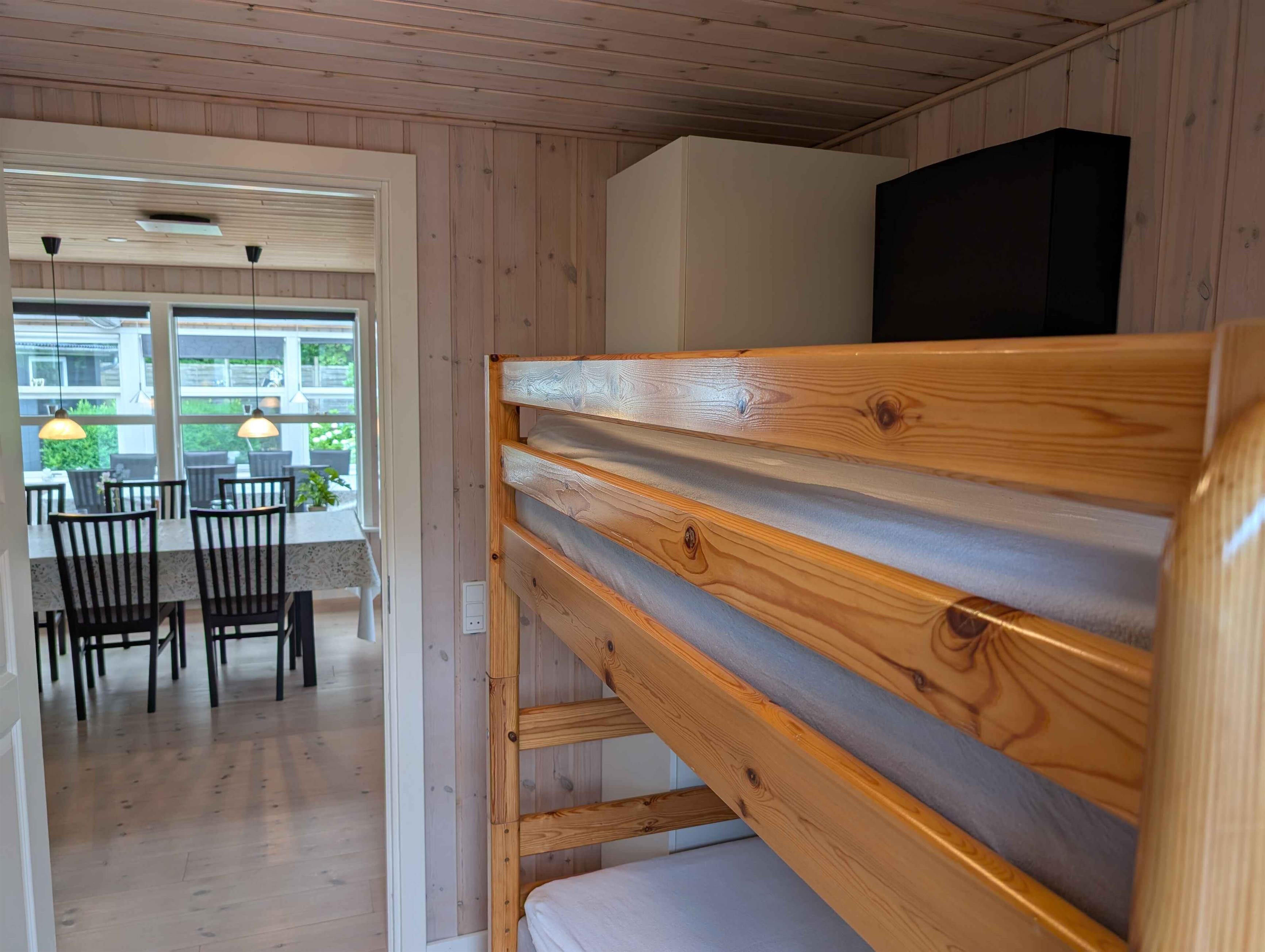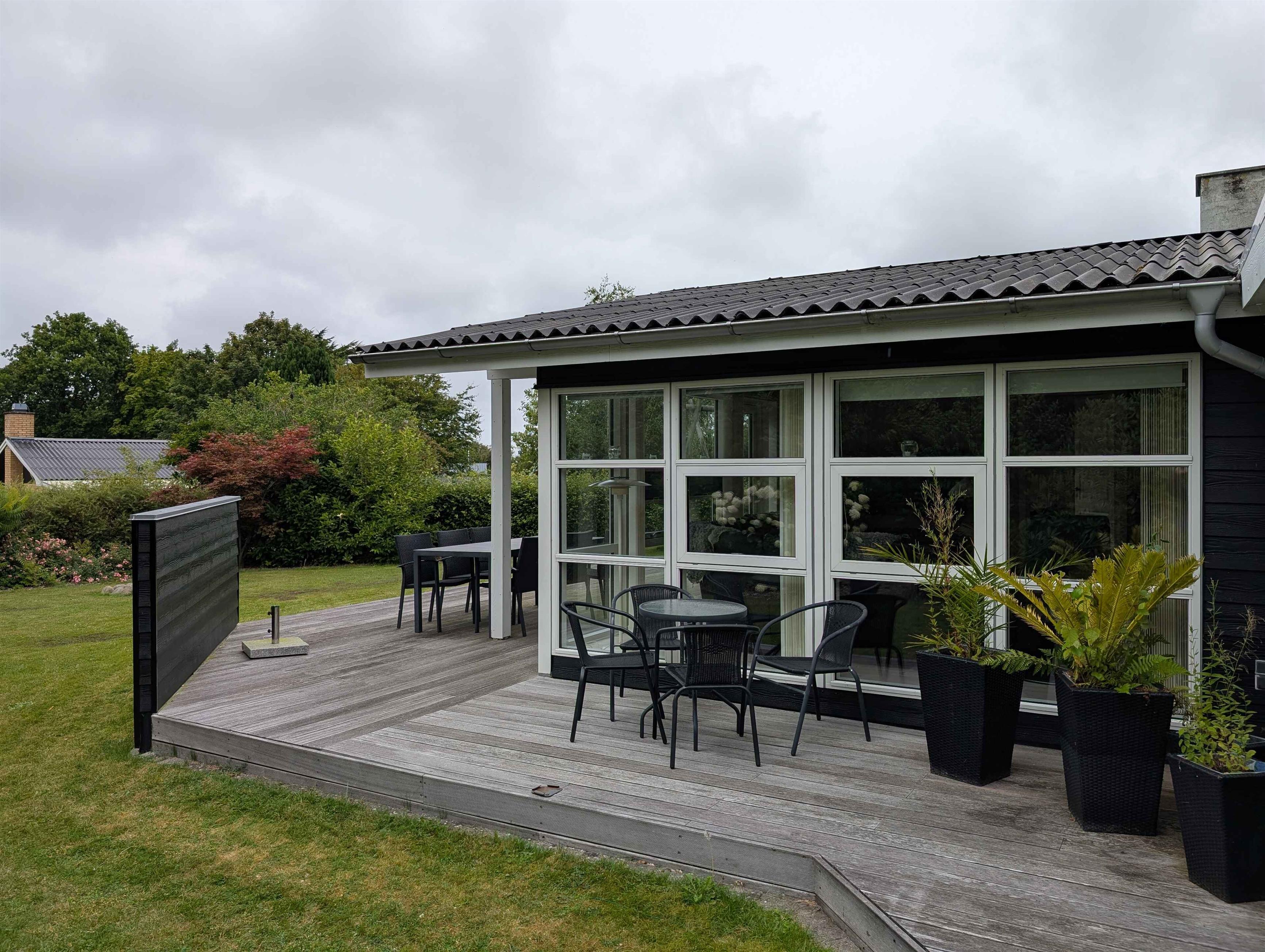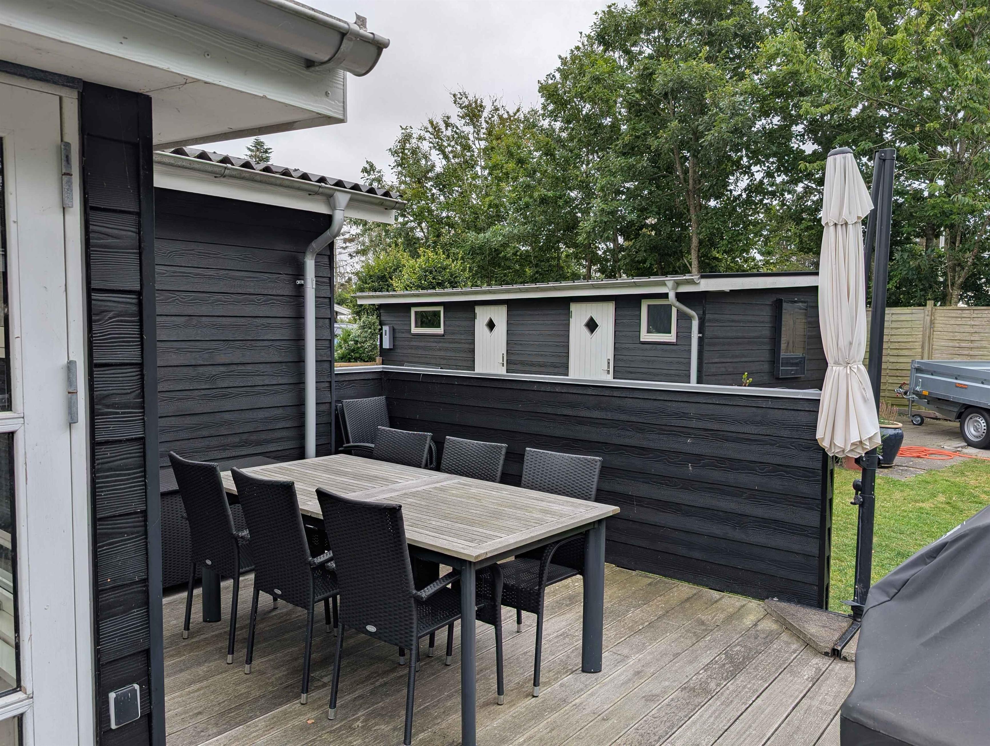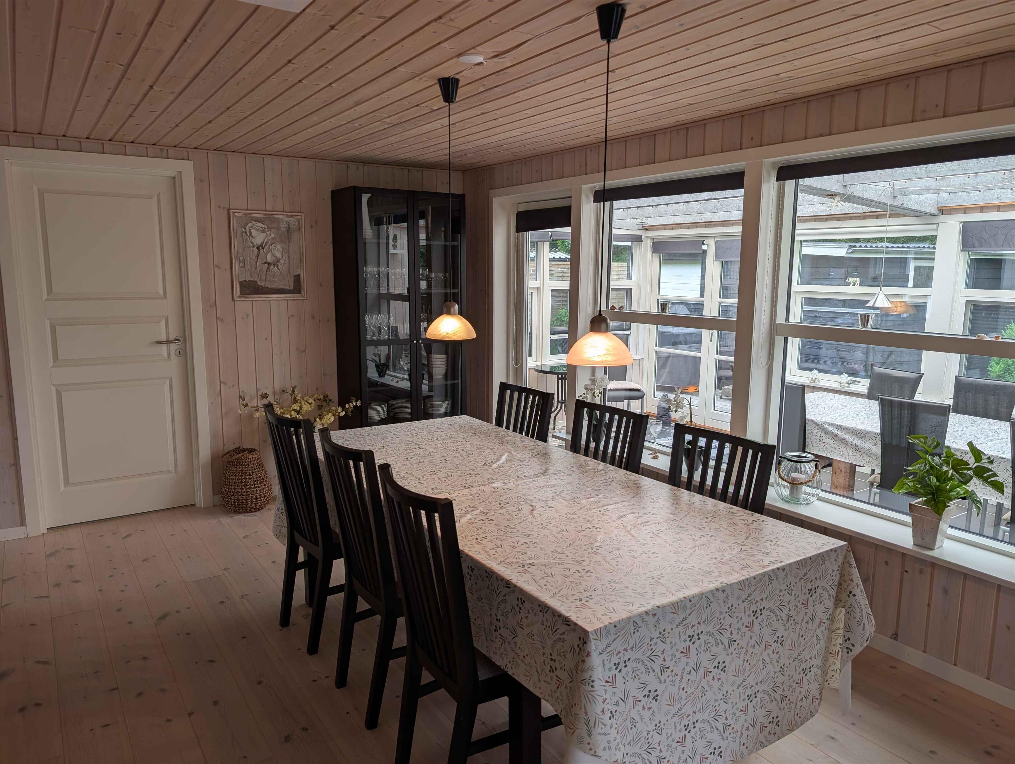 Dit prachtige huis van 116 m² met een serre van 18 m² biedt volop ruimte voor het hele gezin. Het huis is gebouwd in 1969 en in 2007 grondig gerenoveerd en uitgebreid. Het beschikt over een mooie, goed uitgeruste woonkeuken die in open verbinding staat met een grote, ruime woonkamer met een gloednieuwe houtkachel (2025). Er zijn drie slaapkamers met comfortabele tweepersoonsbedden en een kinderkamer met twee stapelbedden. Alle kamers hebben kasten voor kledingopslag. De woning heeft een nette en ruime badkamer met een douchecabine. In de garage tegenover het huis is een goed ingerichte bijkeuken met een grote koelkast en een extra toilet met wasmachine en droger. Op warme zomerdagen kunt u genieten van een barbecue op een van de drie houten terrassen rondom het huis, voorzien van tuinmeubilair. Op koelere dagen is de serre een uitstekend alternatief. De tuin is groot en ruim. In een hoek van de tuin is een speelgebied voor kinderen met schommels en een speelhuisje. Er is ook een vuurplaats op het gazon en genoeg ruimte voor allerlei spelletjes. Het gras wordt gemaaid door een robotmaaier. Het hele perceel is omheind en volledig privé met veel beschutte plekjes. Als u fietsen meeneemt of van een wandeling houdt, kunt u langs het Frederik VII-kanaal naar de haven van Løgstør fietsen of lopen – een tocht van 4 km met leuke restaurants en ijs- en winkelmogelijkheden. Voor een dagje waterpret ligt Landal Rønbjerg op 6 km afstand. Golfliefhebbers kunnen terecht bij Himmerland op 16 km afstand of de Løgstør Golfclub op slechts 4 km. Let op: Niet te huur voor commercieel gebruik.