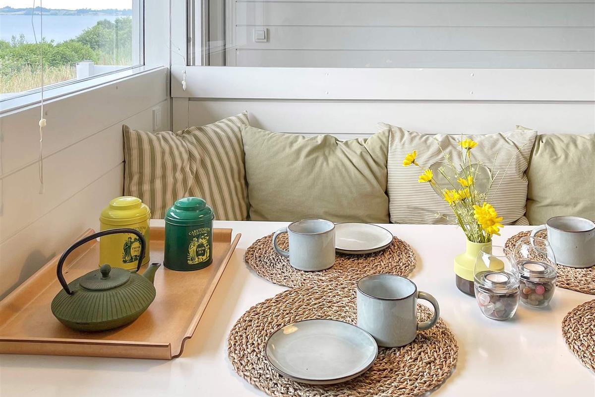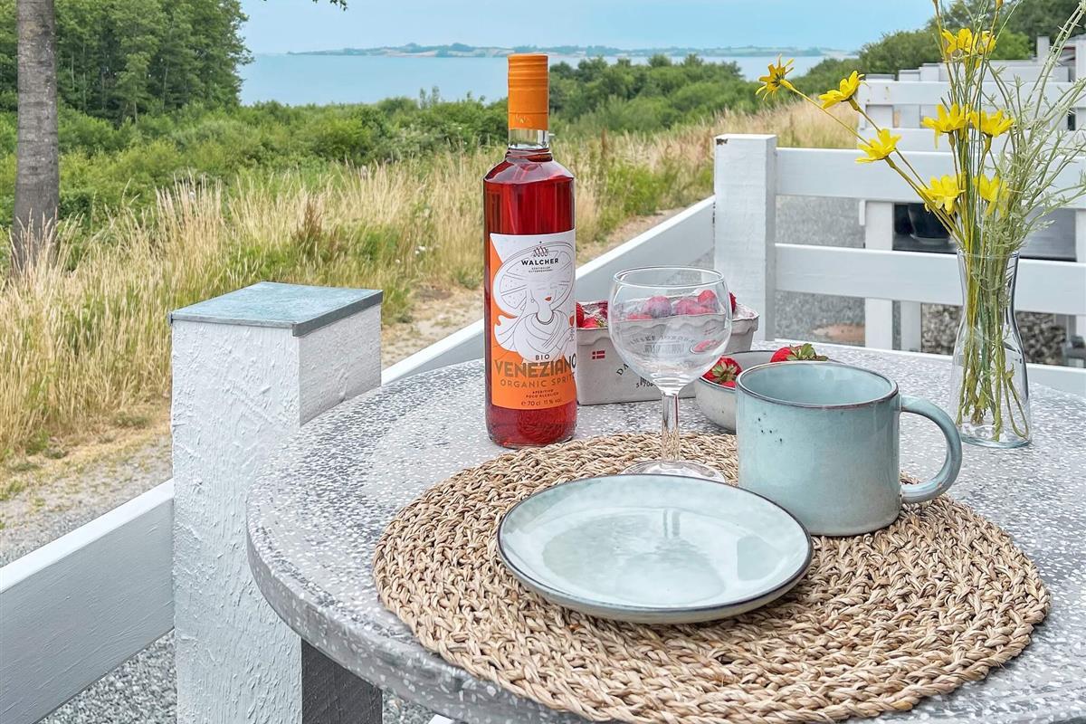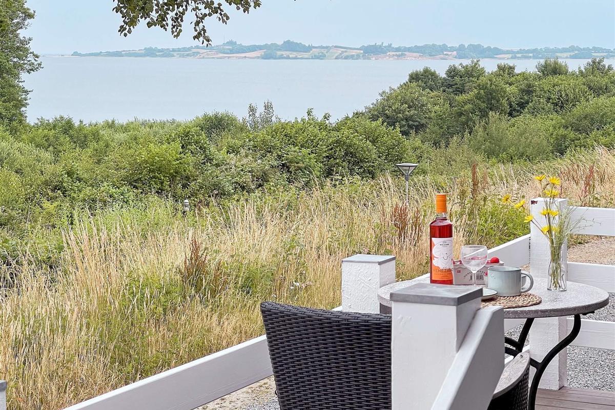 Von der einen Terrasse aus haben Sie Ausblick zur Küste der Genner Bucht und können an klaren Tagen den Bootsverkehr auf dem Wasser beobachten. E gibt Terrassenfläche auf beiden Seiten der Ferienunterkunft, damit man sich von morgens bis abends im Freien aufhalten und entspannen kann. Auf beiden Terrassenflächen stehen dafür schöne Gartenmöbel zur Verfügung.