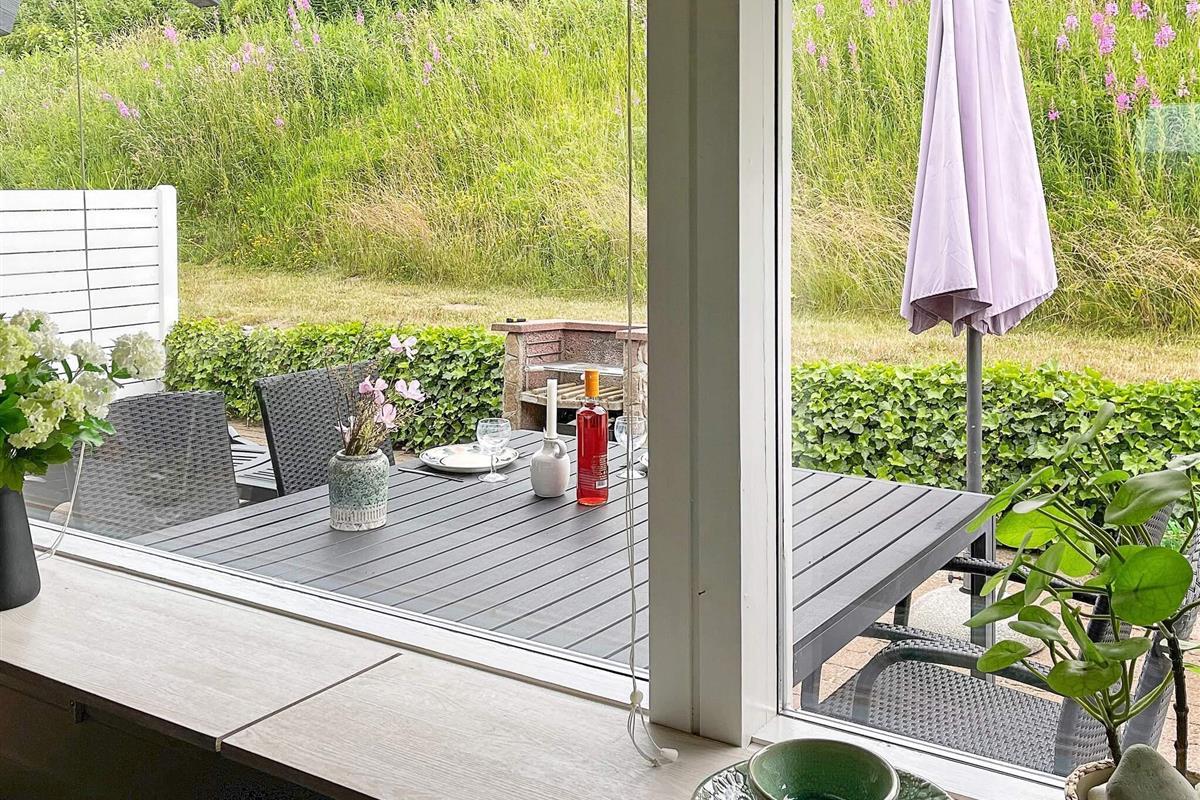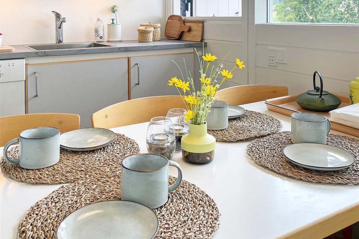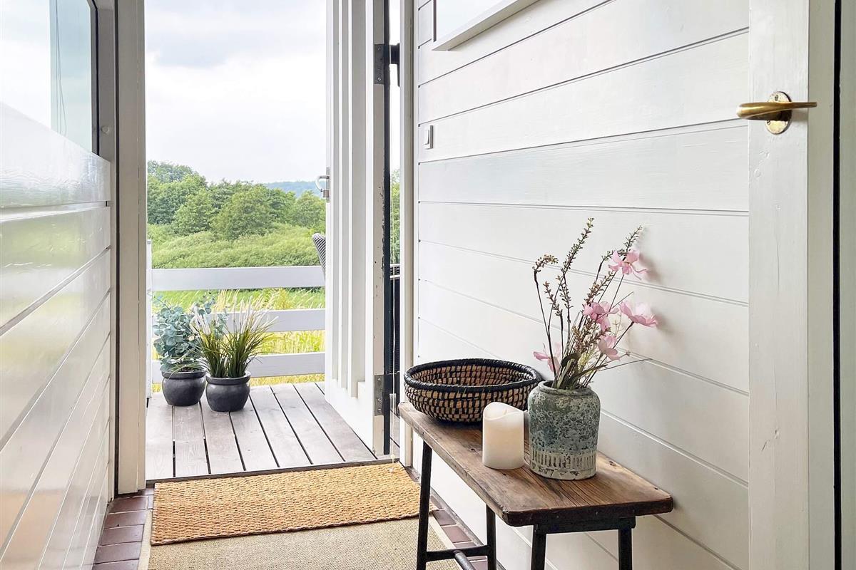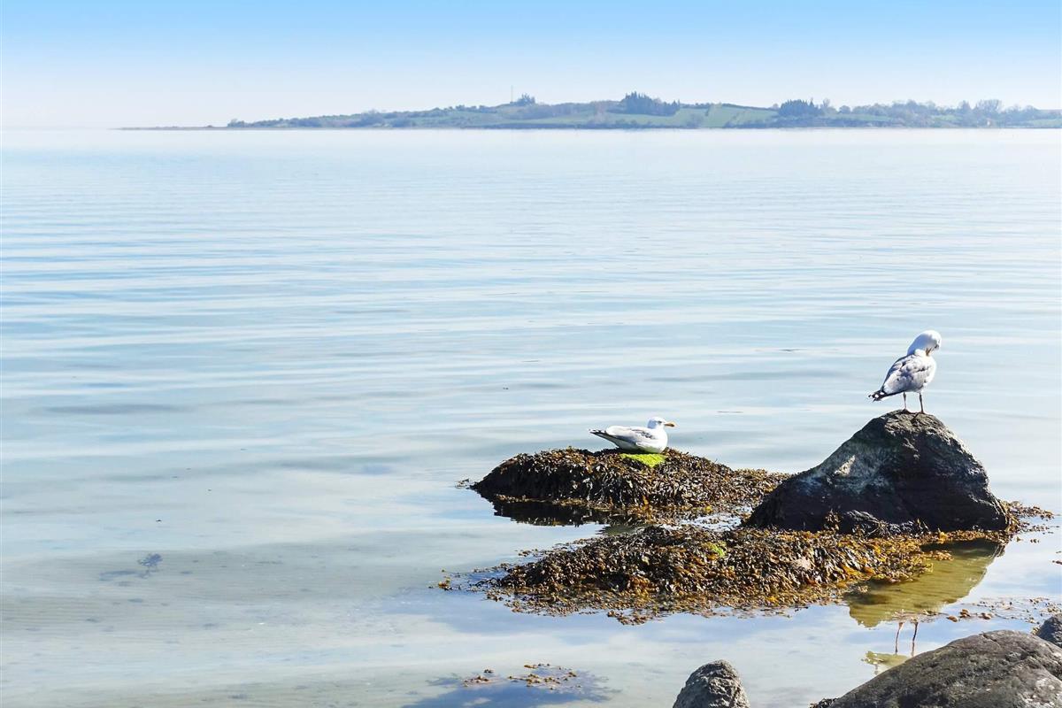 Von der einen Terrasse aus haben Sie Ausblick zur Küste der Genner Bucht und können an klaren Tagen den Bootsverkehr auf dem Wasser beobachten. E gibt Terrassenfläche auf beiden Seiten der Ferienunterkunft, damit man sich von morgens bis abends im Freien aufhalten und entspannen kann. Auf beiden Terrassenflächen stehen dafür schöne Gartenmöbel zur Verfügung.