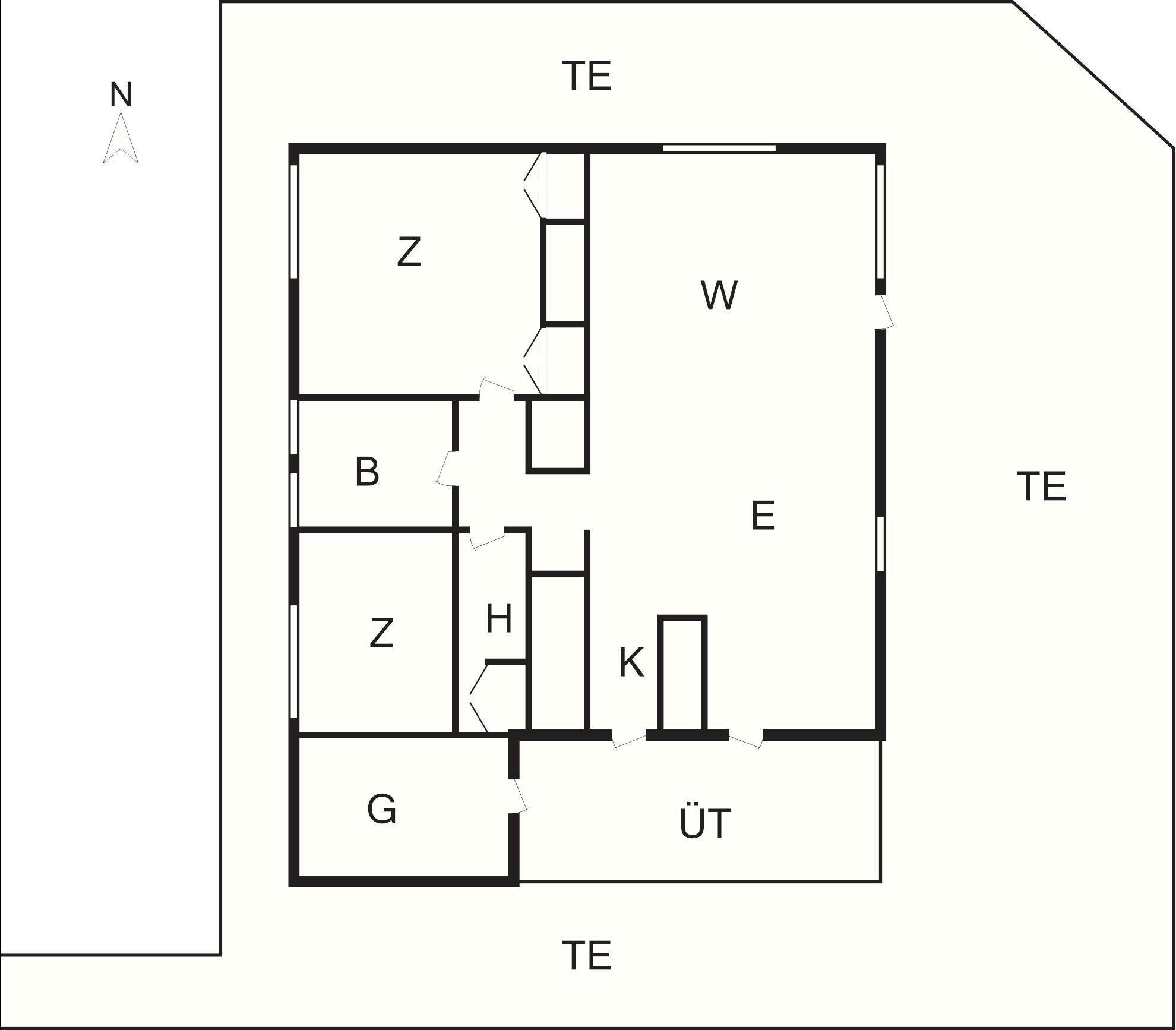 Bad: WC, Waschb., Dusche, Fußbodenheiz.