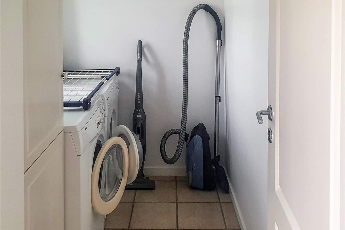Off. Küche: E-Herd, Kühlschr. m. Gefrierfach, Mikrow., Abzugsh., Kaffeem., Spülm., Waschm, Trockner