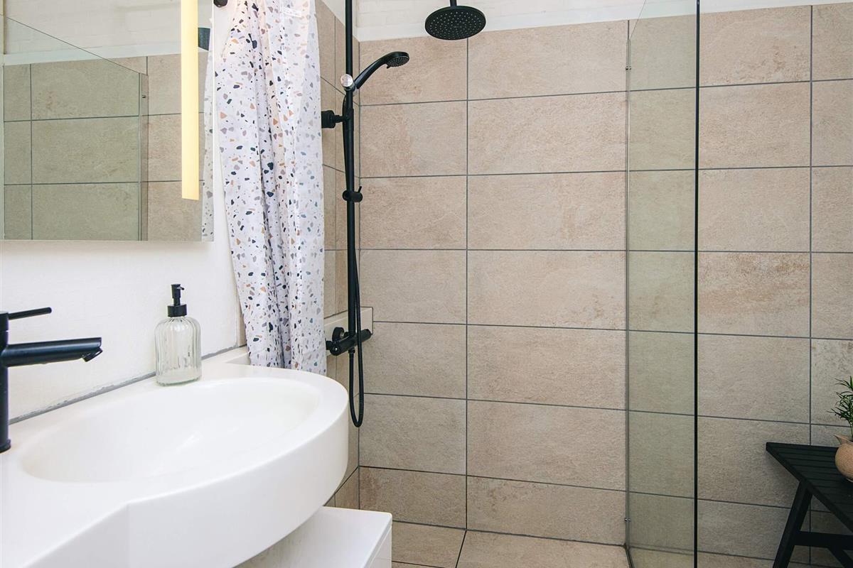 Bad: WC, Waschb., Dusche, Fußbodenheiz.