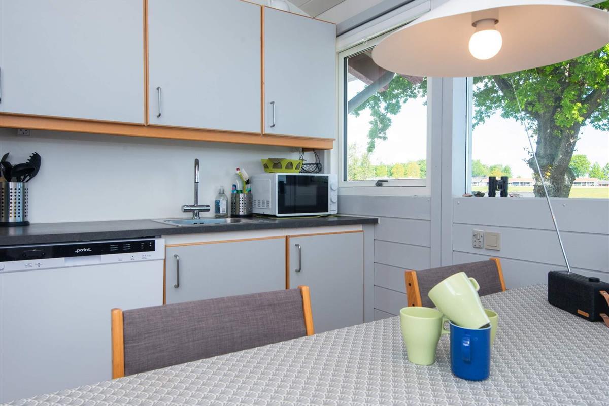 Die Küche ist mit einem Elektroherd, einem Kühlschrank mit Gefrierfach, einer Mikrowelle, einer Kaffeemaschine und einem Geschirrspüler ausgestattet und macht die Zubereitung von Mahlzeiten einfach und angenehm. Das Badezimmer ist mit einem WC, einem Waschbecken und einer Dusche ausgestattet. Im Außenbereich bietet der angelegte Garten Gartenmöbel, Liegestühle und einen