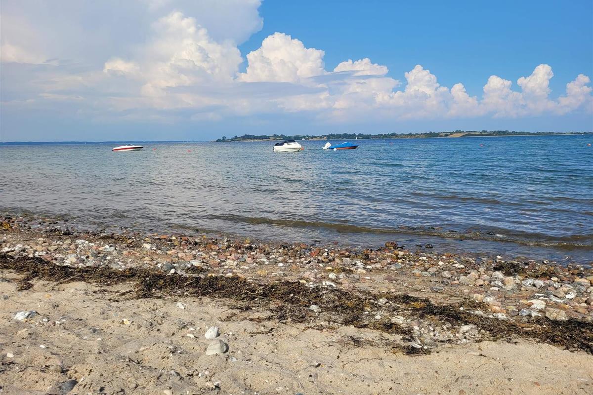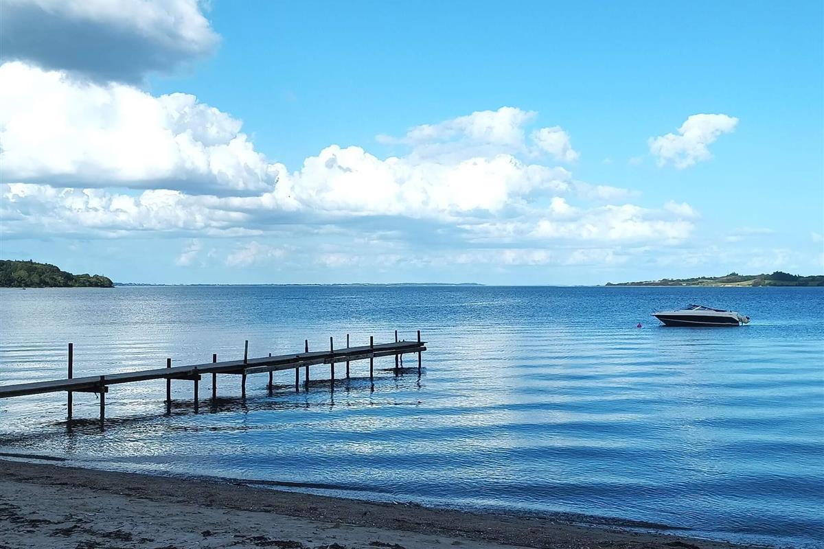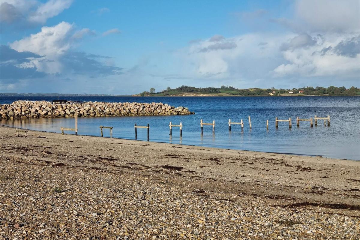 Das Ferienhausgebiet von Løjt liegt zwischen zwei Anhöhen und erstreckt sich bis hinunter zum Wasser in der Genner Bucht, wo man angeln kann.