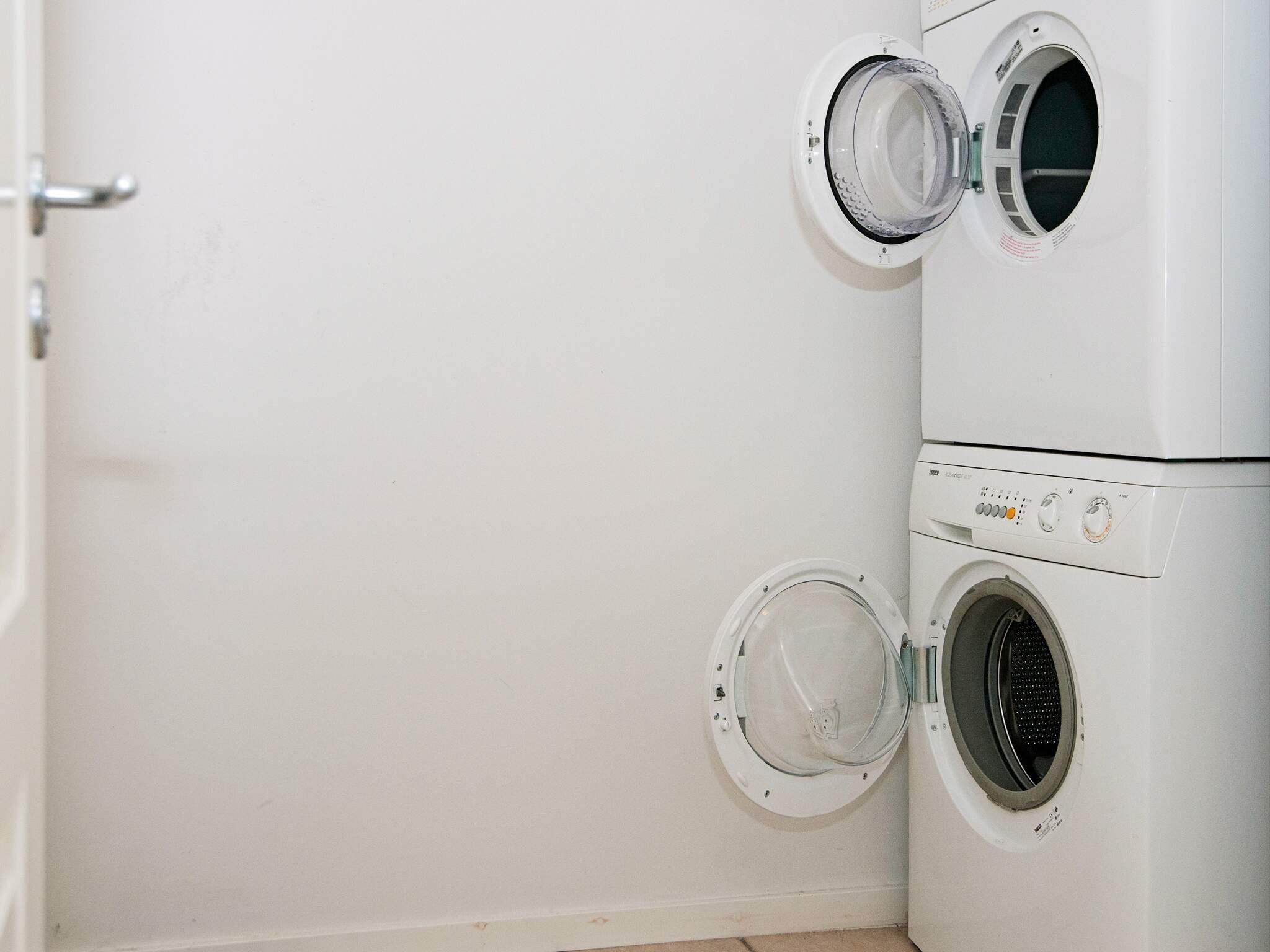Off. Küche: E-Herd, Kühlschr. m. Gefrierfach, Mikrow., Abzugsh., Kaffeem., Spülm., Waschm, Trockner