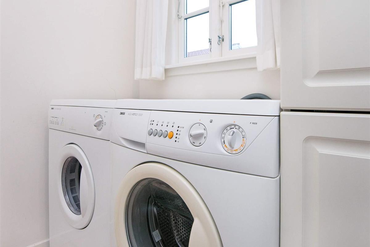 Off. Küche: E-Herd, Kühlschr. m. Gefrierfach, Mikrow., Abzugsh., Kaffeem., Spülm., Waschm, Trockner