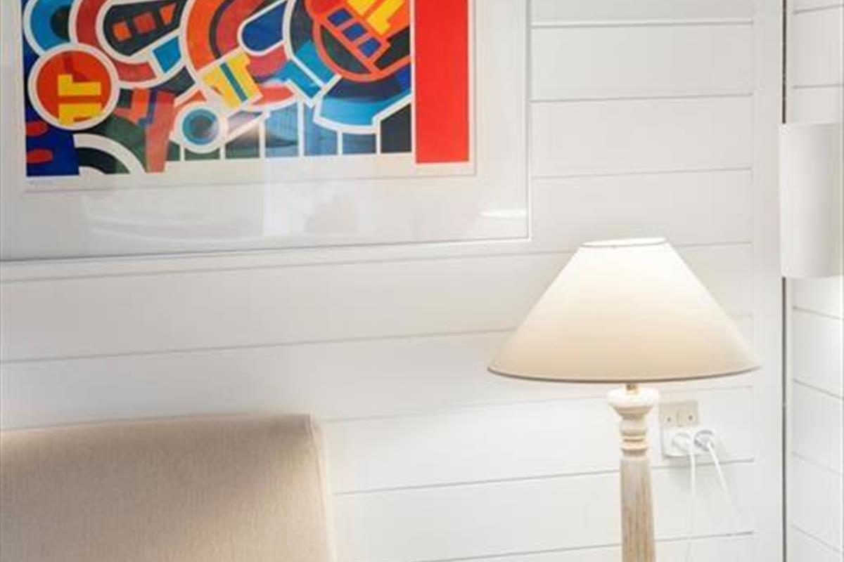 When you enter the holiday apartment, you'll be greeted by a spacious and bright atmosphere that invites you to get cosy. The flexible layout allows you to fold up the bed to create more space in the living room, creating an undisturbed atmosphere. The interior design combines comfort and functionality, so there's room for both relaxation and play. Large windows let in light and give you a view of the back terrace and greenery, creating a special holiday atmosphere. On the front terrace, you can enjoy your morning coffee in peace as you watch the sun rise over the water.
