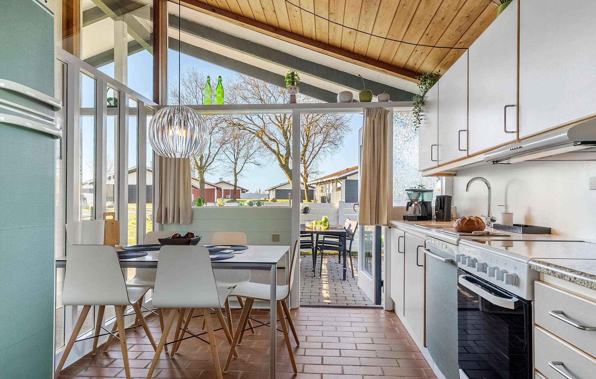 Je vakantiehuis op Løjt Strand biedt een gezellige keuken en directe toegang tot een uitnodigend terras waar je kunt genieten van de frisse lucht en de groene omgeving. Vanuit de woonkamer en keuken stap je zo naar buiten. Geniet van ontspannende dagen op het strand, verken de omgeving met het gezin of kom tot rust met een kopje koffie op het terras.