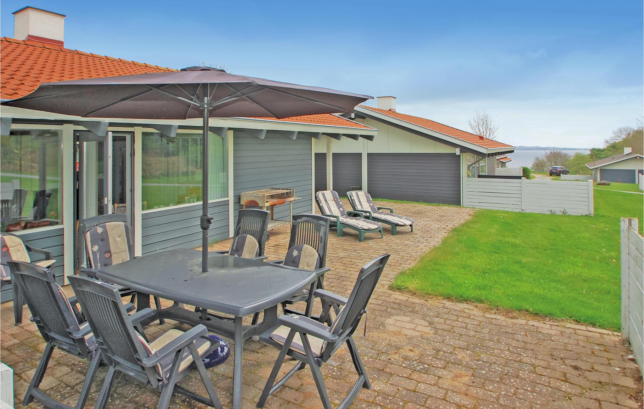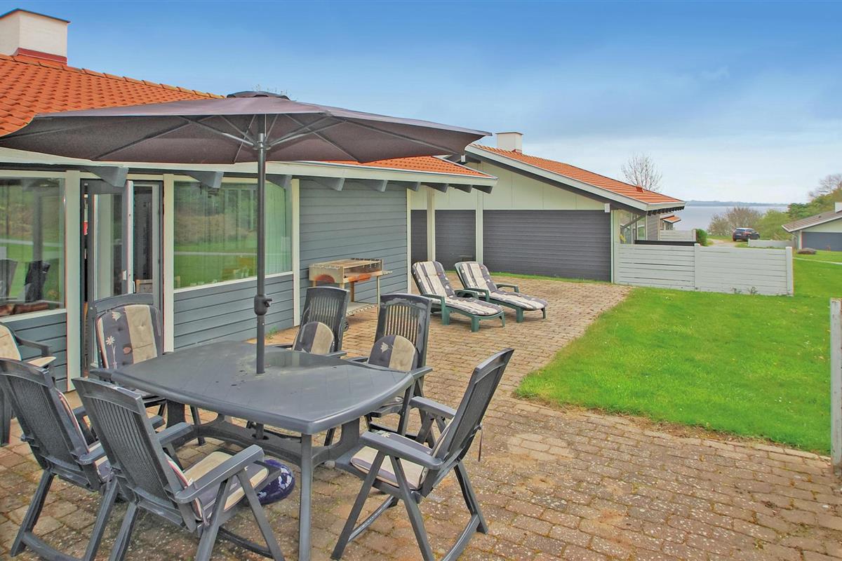 Het terras laat u heerlijk genieten van het vakantieleven. Het huis ligt boven op een heuvel, in een gebied waar de meeste huizen een panoramisch uitzicht op het bos en het water hebben. Een kindvriendelijk zandstrand grenst ook direct aan het gebied. Gasten van het huis kunnen ook gebruik maken van de grote speeltuin en het zwembad. Ook vanaf het terras bij het zwembad heeft u een prachtig uitzicht. Het gemeenschappelijke buitenzwembad is beschikbaar van half mei tot half september. Bezoek ook het plaatselijke avonturenbad in Aabenraa.